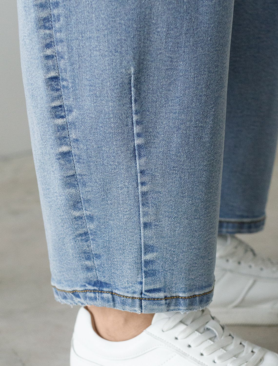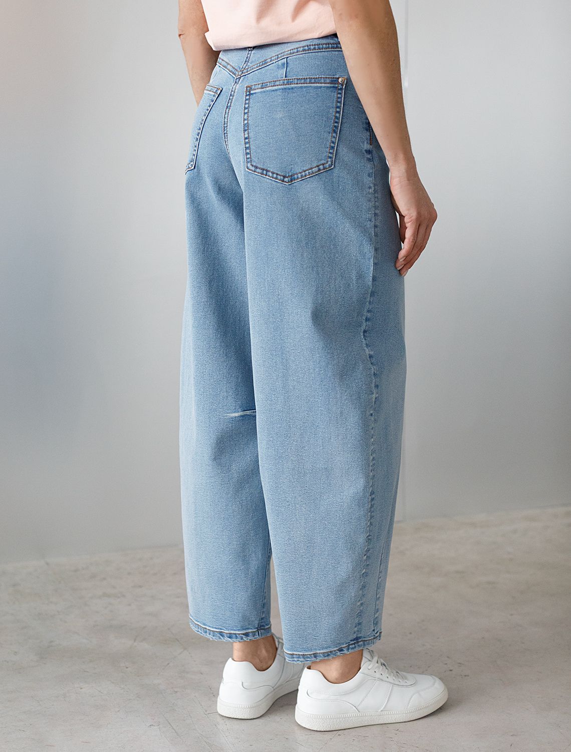 Джинсы баррель с декоративной стиркой из эластичного денима D54.305 голубой