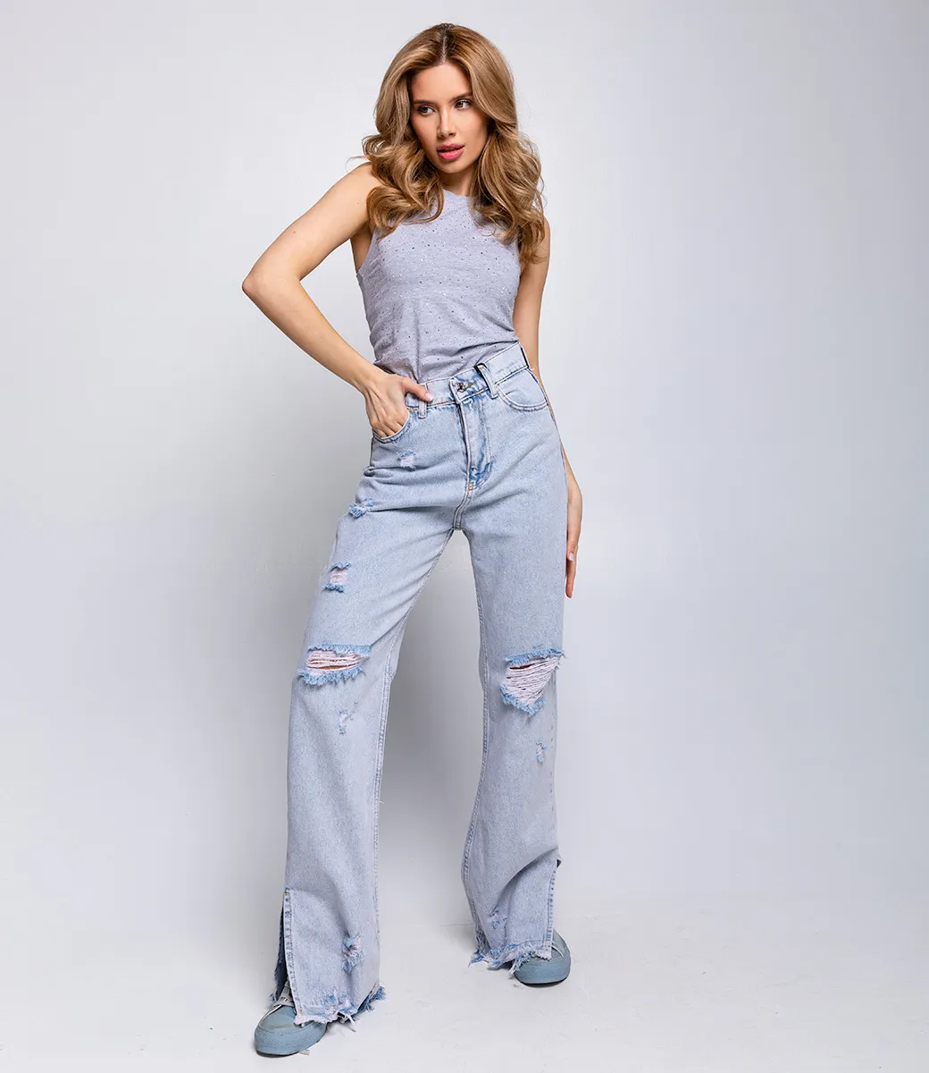 Для изготовления выбрана ткань из 100% хлопка, которая выделяется отличным качеством. Даже после многих стирок джинсы не потеряют своей первоначальной привлекательности. Вы будете их носить с большим удовольствием и радостью. Обратите внимание на декоративные разрезы и потертости, которые добавляют джинсам стильности. Чтобы вы были уверены в размере, мы предоставили на сайте таблицу. Воспользовавшись ею, вы сможете сами сделать мерки и убедиться. Предложенная нами цена является доступной и адекватной. Не откажите себе в удовольствии быть неповторимой и элегантной в этих джинсах! Хлопок