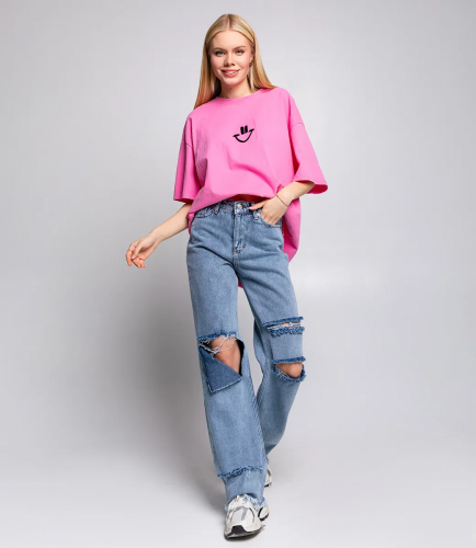 Джинсы с высокой посадкой, широким кроем и разрезами на коленях - это модель, которая создает стильный и современный образ, сочетая в себе тренды и комфорт. Высокая посадка подчеркивает талию и создает визуально более длинные ноги, а широкий крой придает неформальный и эффектный вид. Разрезы на коленях выглядят модно и добавляют небрежный акцент в общий образ. Такие джинсы отлично подходят для создания повседневного или стильного streetstyle образа. Важно выбирать джинсы с соответствующим размером и фасоном, чтобы они хорошо сидели и подчеркивали достоинства фигуры. Хлопок