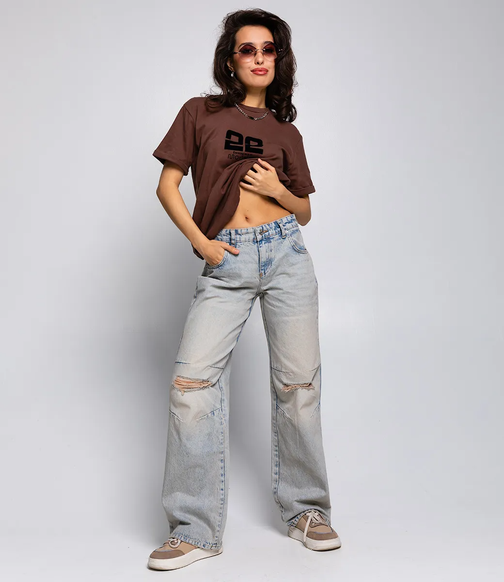 Джинсы средней посадки, с широким кроем и разрезами на коленях - это модель, которая отлично сочетается с различными стилями одежды. Они обеспечивают комфорт и свободу движений благодаря широкому крою, а разрезы на коленях добавляют модный акцент и придают небрежный и стильный вид. Такие джинсы могут подходить как для повседневного носки, так и для создания более выдержанного образа. Хлопок