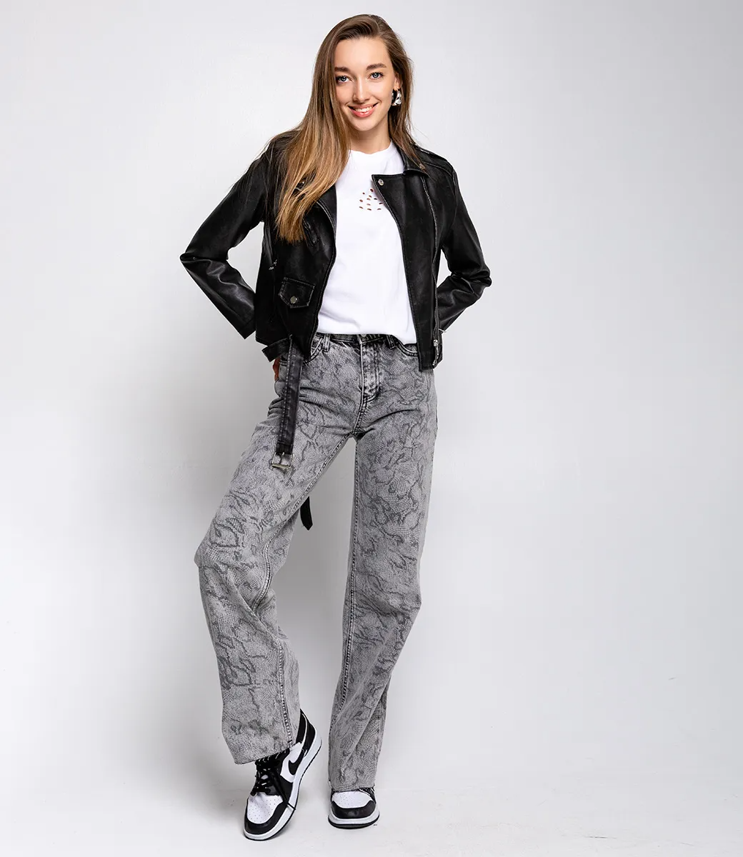 Джинсы – это вещь, которая подчеркивает уникальность и привлекательность каждой представительницы прекрасного пола. Данная модель подойдет для сезонов весна и осень. Ее выбирают покупательницы, которые ценят сочетание идеального качества и стоимости. Прямой крой джинс подчеркивает привлекательность фигуры. Изготовитель знает, как найти уникальные и модные решения. Для изготовления выбрана ткань из 100% хлопка, которая характеризуется отличным качеством. Даже после многих стирок, джинсы не потеряют своей первоначальной красоты и привлекательности. Вы будете их носить с большим удовольствием. Обратите внимание на змеиный принт. Он является насыщенным и полностью соответствует фотографии на странице. Для уверенности в размере, мы предоставили на сайте таблицу. Воспользовавшись ею, вы сможете самостоятельно обмерить себя и убедиться. Установленная нами цена является доступной. Подарите себе удовольствие быть неповторимой! Рост модели 168, 85-63-92. Хлопок