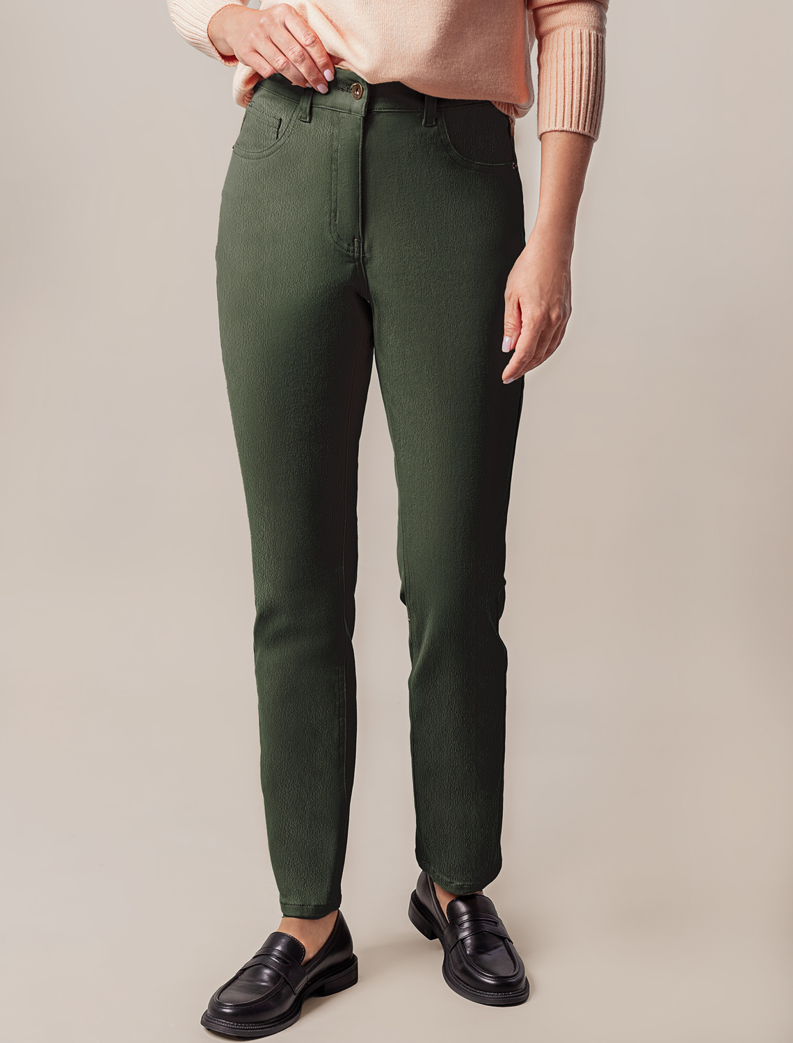 Джинсы прямого кроя выполнены из эластичного денима. Изделие комфортно садится по фигуре и не сковывает движения. Модель хорошо комбинируется с вязаным трикотажем, блузками, лонгсливами, свитшотами. Как альтернатива брюкам, в нестрогий офисный дресс-код. Изделие дополнено высококачественной фурнитурой с фирменным логотипом бренда. темно-оливковый