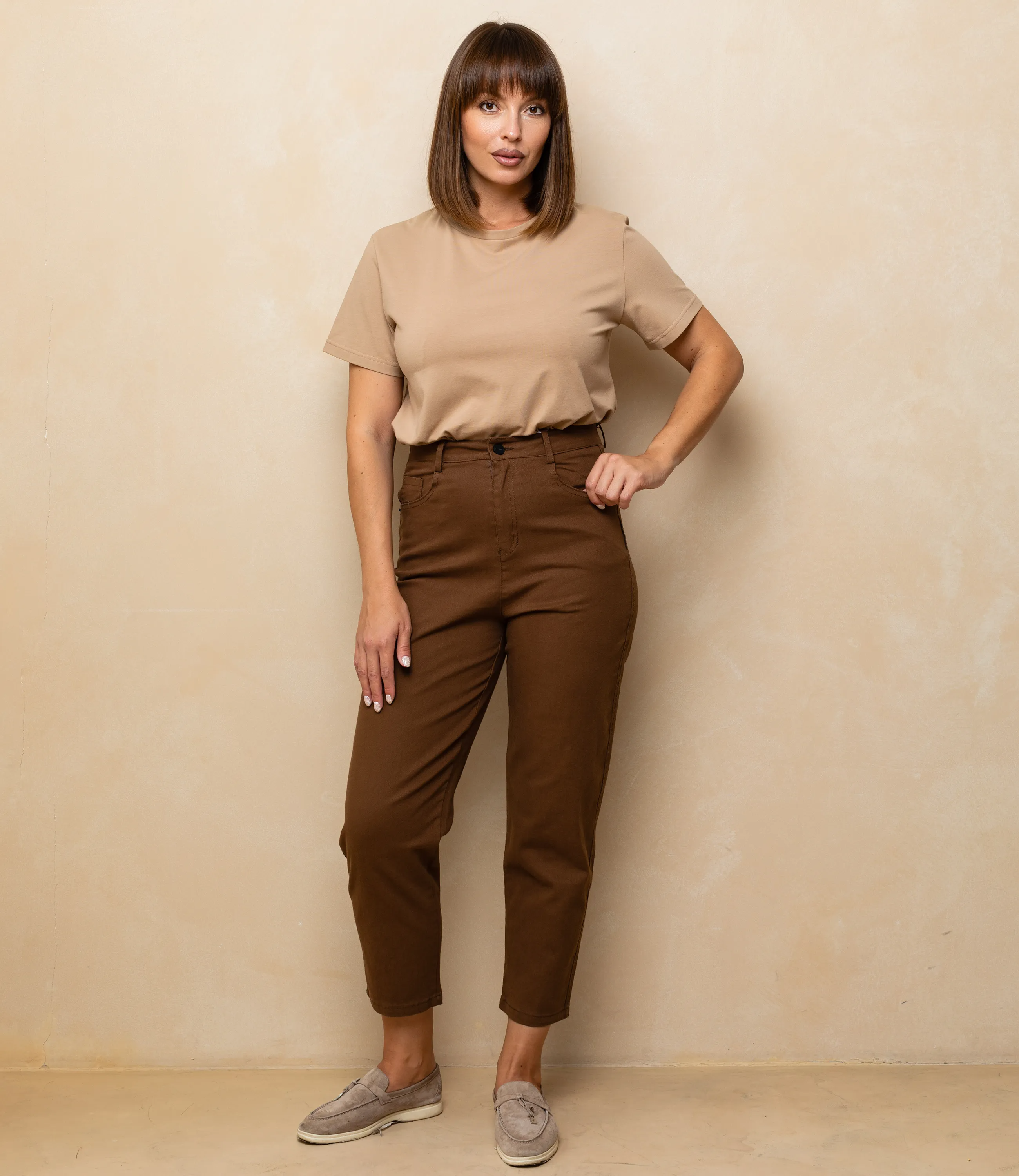 Джинсы — это не просто часть гардероба, а настоящая находка для каждой женщины, желающей подчеркнуть свою индивидуальность и стиль. Эта модель, выполненная из высококачественного материала 100% хлопка, сочетает в себе комфорт, практичность и актуальные тренды. Посадка средняя — талия фиксируется на обычной линии пояса, штанины идут свободно, но не мешковато, создавая прямой силуэт с едва заметным сужением книзу. Практичная модель с чистым и лаконичным дизайном, продуманной конструкцией пояса и карманов, удобной посадкой и аккуратной отделкой, подходящая для повседневного и полуформального образа. На странице представлены размеры, что поможет клиентам легко подобрать идеальный вариант. Установленная цена является доступной, что делает джинсы отличным выбором для вашего ассортимента. Предложите вашим клиентам возможность дополнить свой гардероб этой стильной и универсальной моделью, которая будет уместна в любой ситуации! Подарите им шанс почувствовать себя уверенно и модно с этими великолепными джинсами, способными разнообразить любой образ! Вы можете заказать онлайн презентацию на интересующие Вас модели. Наши менеджеры свяжутся с Вами и проведут индивидуальную видеотрансляцию, помогут составить заказ и ответят на Ваши вопросы. Хлопок