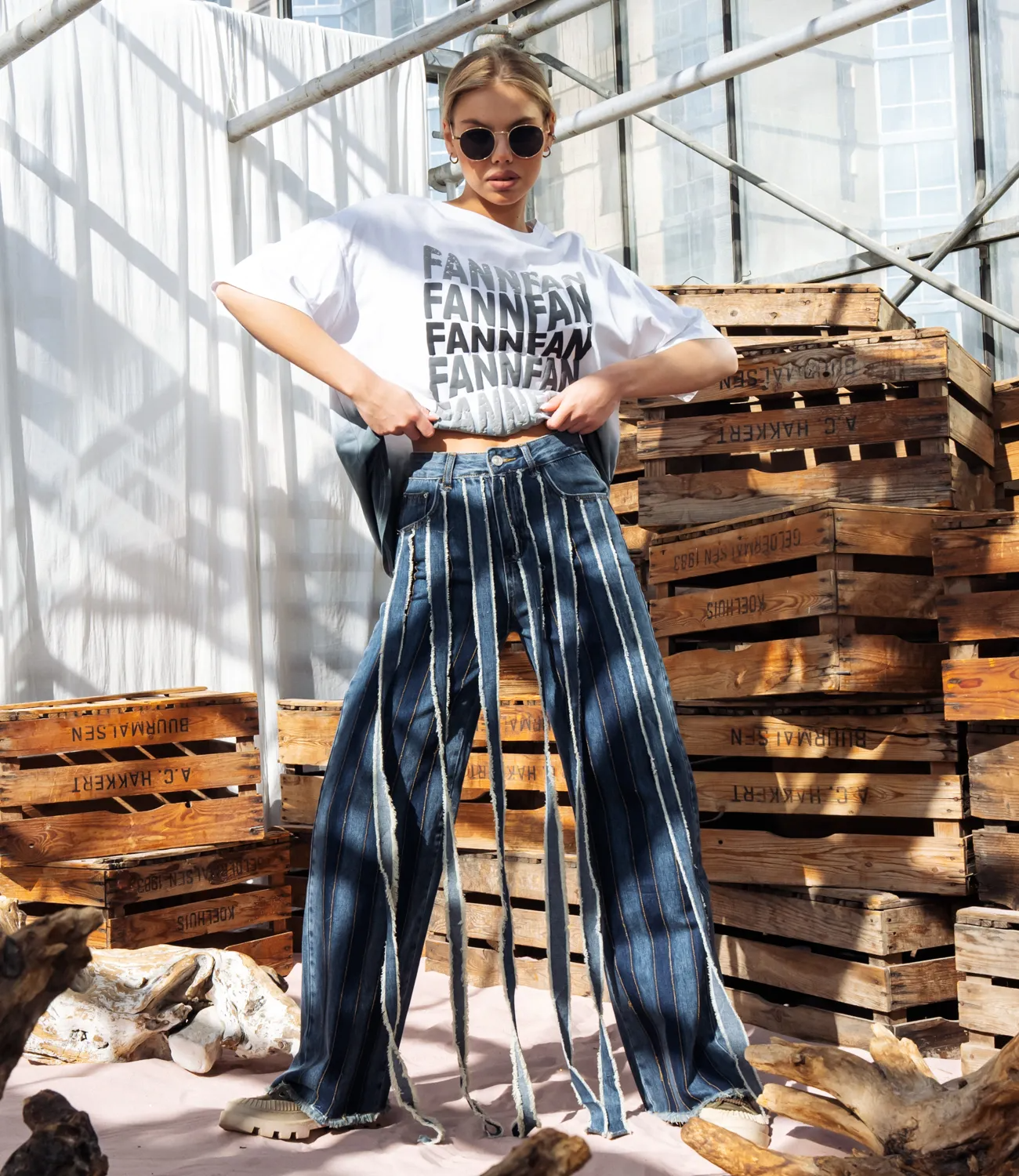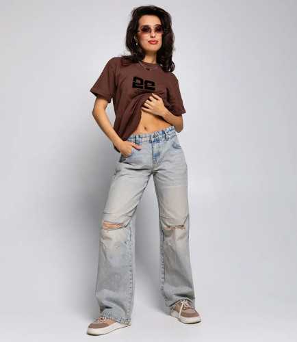 Широкий крой джинсов обеспечивает свободу движений и непринужденность, добавляя модный и современный вид. Они подходят для различных типов фигуры и создают эффектный силуэт. Средняя посадка джинсов означает, что они сидят на средней части талии, обеспечивая комфорт и удобство при ношении. Это классический стиль посадки, который хорошо сочетается с различными верхами и создает уравновешенный образ. Деталь в виде лоскутов, пришитых к поясу и спускающихся на всю длину изделия, добавляет джинсам оригинальности и индивидуальности. Такие джинсы отлично сочетаются с простыми футболками, блузами или свитерами, позволяя создавать стильные и элегантные образы. Они подходят для повседневной носки или для создания более эффектных выходных образов. Рост модели 168 см., 89-63-90. Хлопок
