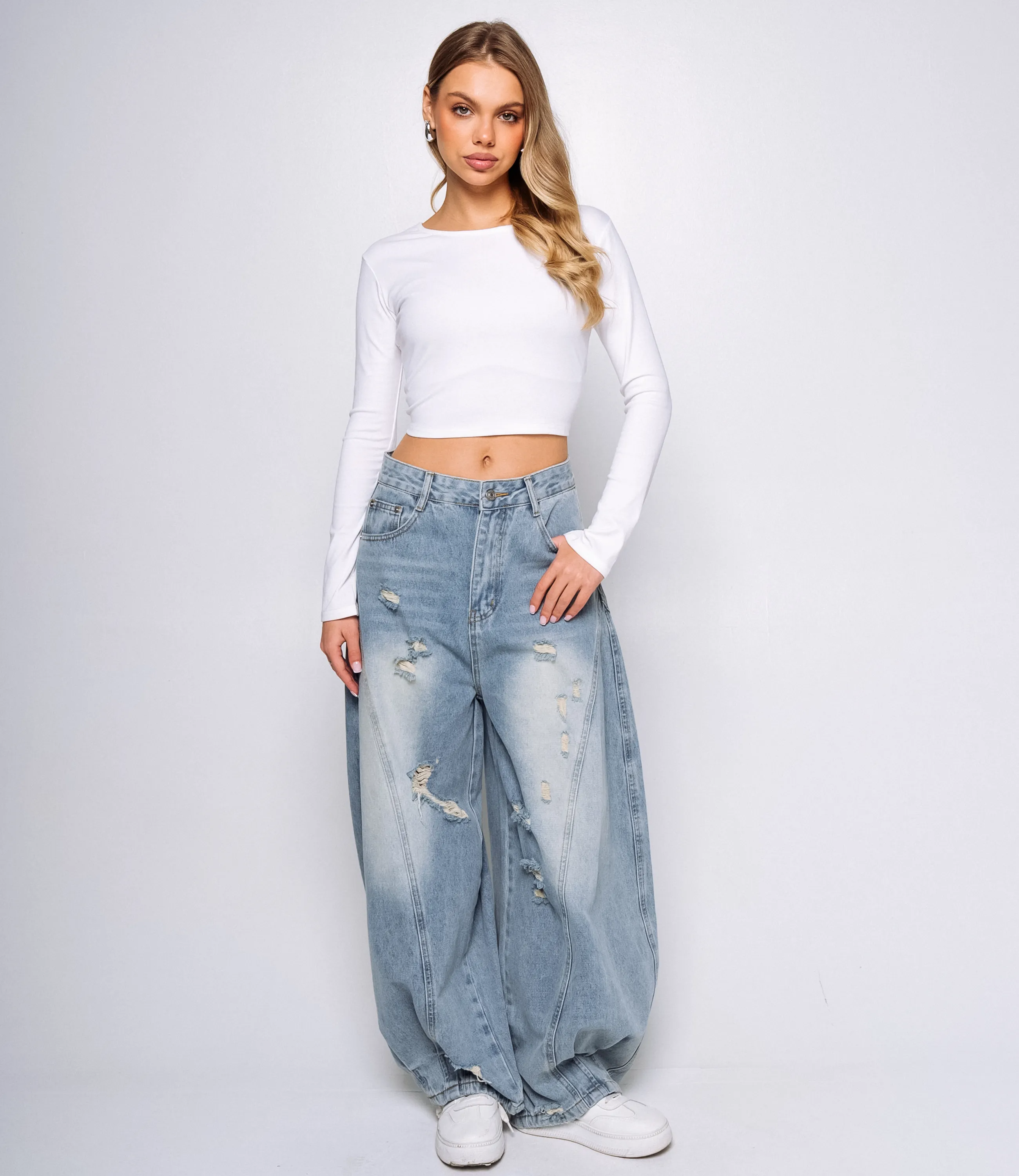 Джинсы — это часть гардероба, которая подчёркивает привлекательность каждой женщины. Джинсы широкого кроя с высокой посадкой до линии талии, выполнены из плотной хлопковой ткани с чёткой структурой полотна; пояс с шлевками и застёжкой на пуговицу и молнию. Декоративные потертости и прорехи произвольно расположены по передней части обеих штанин, с открытыми бахромчатыми краями, создающими эффект «поношенности». Для пошива использована ткань 65% хлопок и 35% полиэстера. На странице представлена таблица размеров, которая поможет вам корректно сформировать ассортимент и минимизировать ошибки при оптовых закупках. Производитель обеспечивает качественную отделку и надёжную фурнитуру. Установленные оптовые условия адекватны и позволяют получить привлекательную маржинальность при продаже в магазинах. Рекомендуем включить эти джинсы в ассортимент оптовых закупок — они станут востребованным предложением для клиенток, ищущих комфортный и стильный повседневный предмет гардероба. Хлопок, Полиэстер