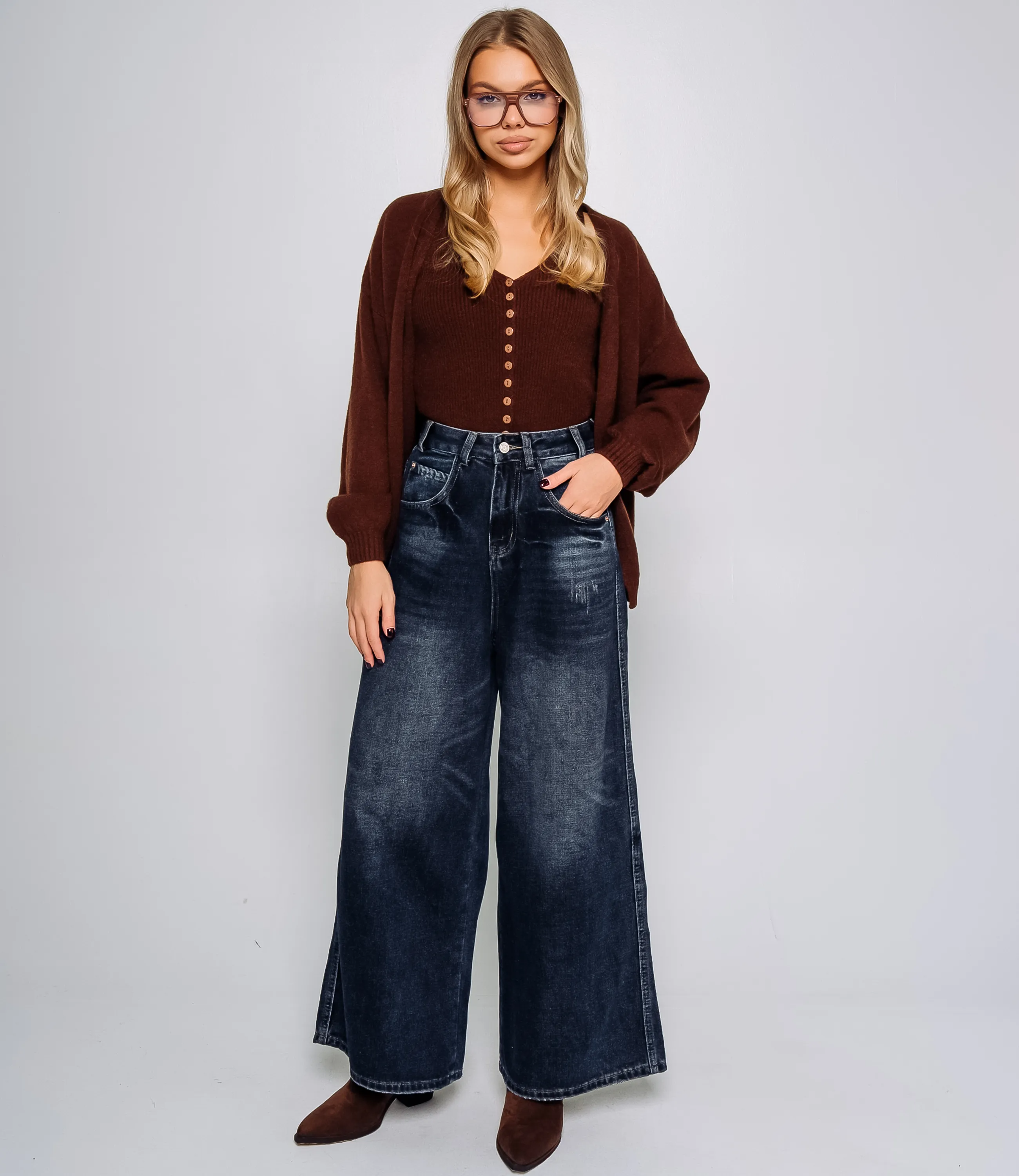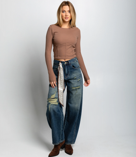 Джинсы — это часть гардероба, которая подчёркивает привлекательность каждой женщины. Модель имеет свободный широкий крой и высокую посадку, что придаёт образу современный и комфортный вид. Из плотного денима с лёгким эффектом потертости и аккуратными декоративными царапинами на бёдрах джинсы смотрятся стильно и немного неформально. Классическая застёжка на пуговицу и молнию, стандартные карманы спереди и сзади, широкий низ, хорошо сочетающийся как с обувью на каблуке, так и с ботинками, делают модель универсальной для повседневного гардероба в стиле casual. Для пошива использована ткань (95% хлопок, 5% полиэстер), отличающаяся прочностью и комфортом. Материал сохраняет форму и внешний вид даже после многократных стирок, что важно для розничной продажи и удовлетворённости покупательниц. Цвет и эффект потертости максимально соответствуют фотографии на сайте, что упрощает демонстрацию товара и снижает количество возвратов. На странице представленна таблица размеров, которая поможет вам корректно сформировать ассортимент и минимизировать ошибки при оптовых закупках. Производитель обеспечивает качественную отделку и фурнитуру, а установленные оптовые условия являются адекватными и обеспечивают хорошую маржинальность для магазинов. Рекомендуем включить эти джинсы в ассортимент оптовых закупок — они станут привлекательным предложением для клиенток, ищущих комфортную и стильную повседневную одежду. Рост модели 168 см., 89-63-90. Хлопок, Полиэстер