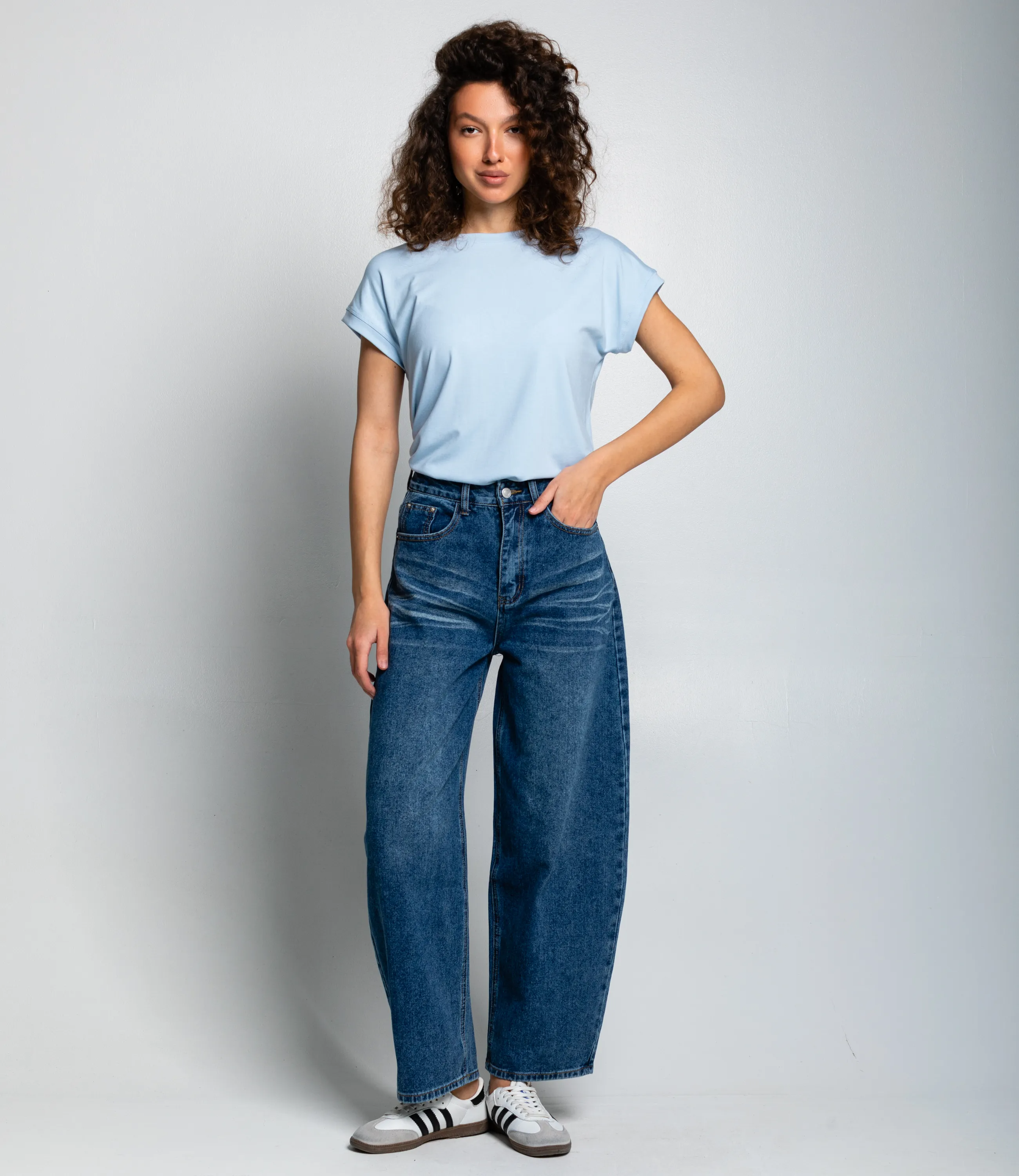 Джинсы — это часть гардероба, которая подчёркивает привлекательность каждой женщины. Широкие джинсы с завышенной талией и свободными прямыми штанинами до обуви; пояс с петлями, металлическая пуговица и молния; пять карманов (включая монетный); усиленные швы; небольшие декоративные потертости и прорехи на бедре и голени; плотный деним с видимой саржевой текстурой; двойная строчка по низу; свободный, повседневный силуэт. Для пошива использована ткань 84% хлопок, 15% полиэстер и 1% вискоза. На странице представлена таблица размеров, которая поможет вам корректно сформировать ассортимент и минимизировать ошибки при оптовых закупках. Производитель обеспечивает качественную отделку и надёжную фурнитуру. Установленные оптовые условия адекватны и позволяют получить привлекательную маржинальность при продаже в магазинах. Рекомендуем включить эти джинсы в ассортимент оптовых закупок — они станут востребованным предложением для клиенток, ищущих комфортный и стильный повседневный предмет гардероба. Хлопок, Эластан, Полиэстер