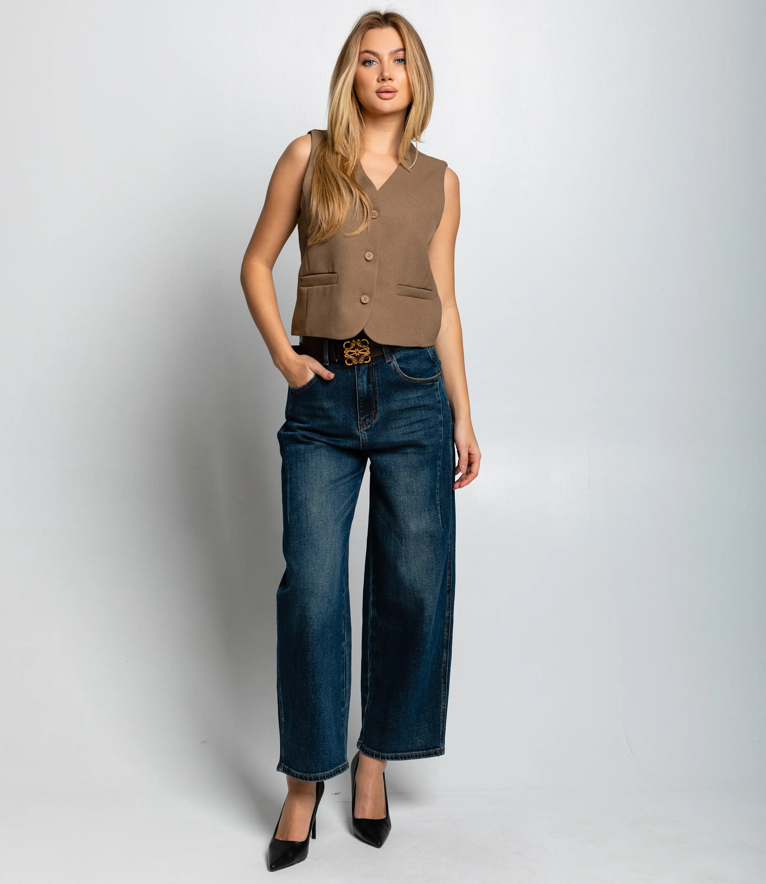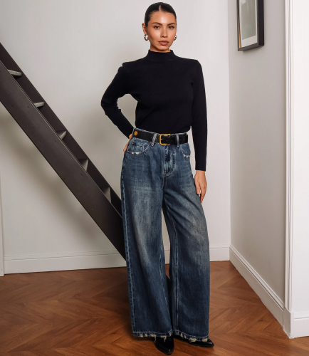 Джинсы это часть гардероба, которая подчёркивает индивидуальность и придаёт образу современную уверенность. Джинсы изготовлены из плотного хлопкового денима с отчётливой фактурой ткани и имеют свободный крой с высокой или средне‑высокой посадкой на талии, застёгиваются спереди на пуговицу и потайную застёжку‑молнию; пояс с петлями для ремня аккуратно облегает талию и дополнен декоративной и функциональной пряжкой на ремне, спереди расположены два классических втачных кармана и небольшой монетный карман, сзади — две накладные карманные детали с усиленной прострочкой. Брючины идут свободно от бёдер и имеют широкий, прямой до слегка расклёшенного низа, подшивка низа аккуратная с видимой строчкой. Для пошива используется плотный деним из 95% хлопка и 5% эластан, что обеспечивает натуральную текстуру, комфорт и минимальную растяжимость с хорошим восстановлением формы. Лёгкая текстура и эффект варки придают джинсам винтажную эстетику и визуальную глубину, при этом материал остаётся прочным и долговечным даже при активной носке. Для оптовых покупателей это универсальная и оборотистая позиция, которая легко вписывается в ассортимент casual и streetwear и привлекает широкую аудиторию за счёт понятного силуэта и актуальной стилистики. Рекомендуем выкладывать модель в капсулы повседневных образов, комбинировать с базовыми футболками, рубашками и лёгкими пиджаками, предлагать варианты с ремнём с крупной пряжкой как готовое стильное решение и комплектовать наборы из нескольких ключевых оттенков для ускорения оборачиваемости. Цвета и фактура соответствуют фото в карточке товара, на странице размещена подробная таблица размеров для точного подбора. Хлопок, Эластан