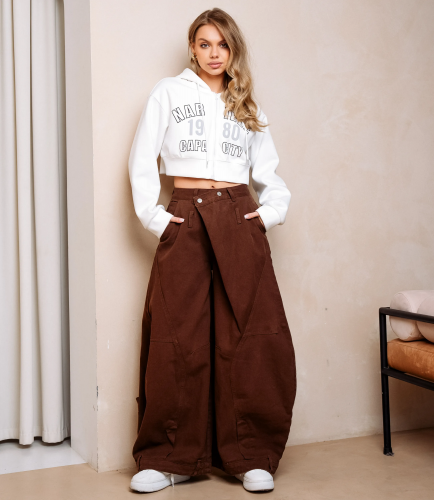 Джинсы — это часть гардероба, которая подчёркивает привлекательность каждой женщины. Джинсы с высокой посадкой и прямой широкой штаниной, выполнены из плотного денима с выраженной текстурой ткани; классическая пятикарманная конструкция с двумя втачными передними карманами, маленьким монетным кармашком и двумя накладными задними карманами, пояс с шлевками для ремня и застёжкой на потайную металлическую пуговицу и молнию, усиленные двойной строчкой швы по боковым и шаговым швам. Для пошива использована ткань 90% хлопок, 5% полиэстера и 5% эластана. На странице представлена таблица размеров, которая поможет вам корректно сформировать ассортимент и минимизировать ошибки при оптовых закупках. Производитель обеспечивает качественную отделку и надёжную фурнитуру. Установленные оптовые условия адекватны и позволяют получить привлекательную маржинальность при продаже в магазинах. Рекомендуем включить эти джинсы в ассортимент оптовых закупок — они станут востребованным предложением для клиенток, ищущих комфортный и стильный повседневный предмет гардероба. Рост модели 168 см., 89-63-90. Хлопок, Эластан, Полиэстер
