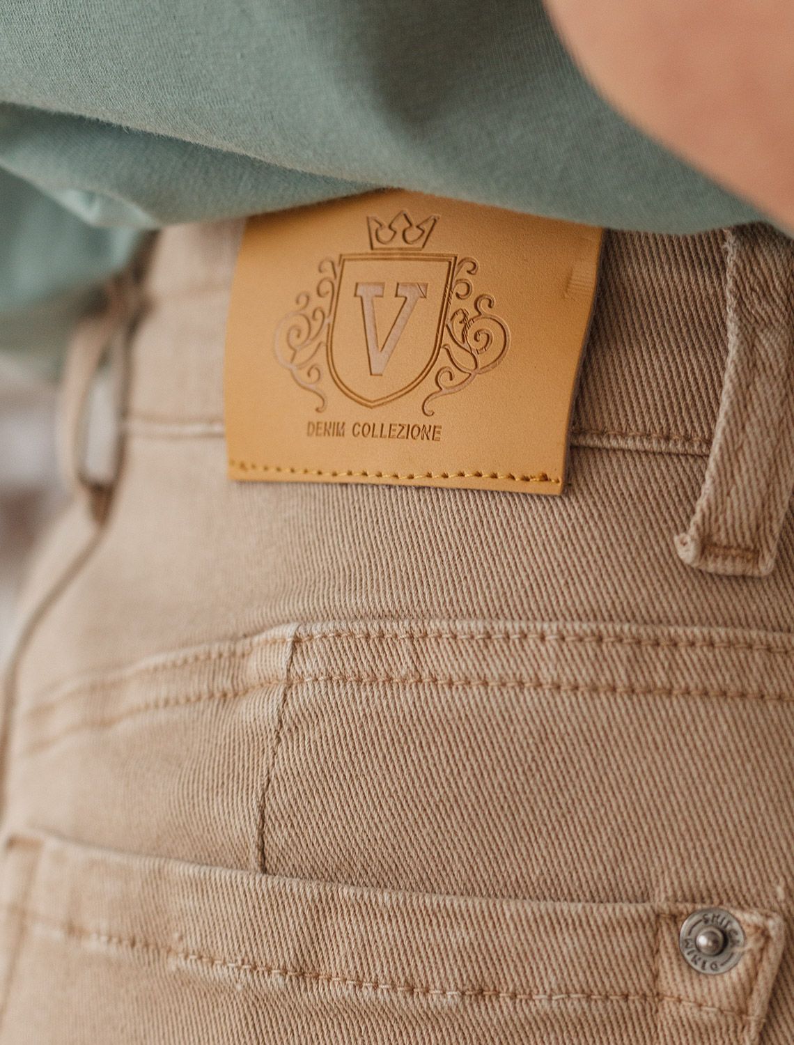 Джинсы мом-фит из эластичного денима D54.109 бежевый