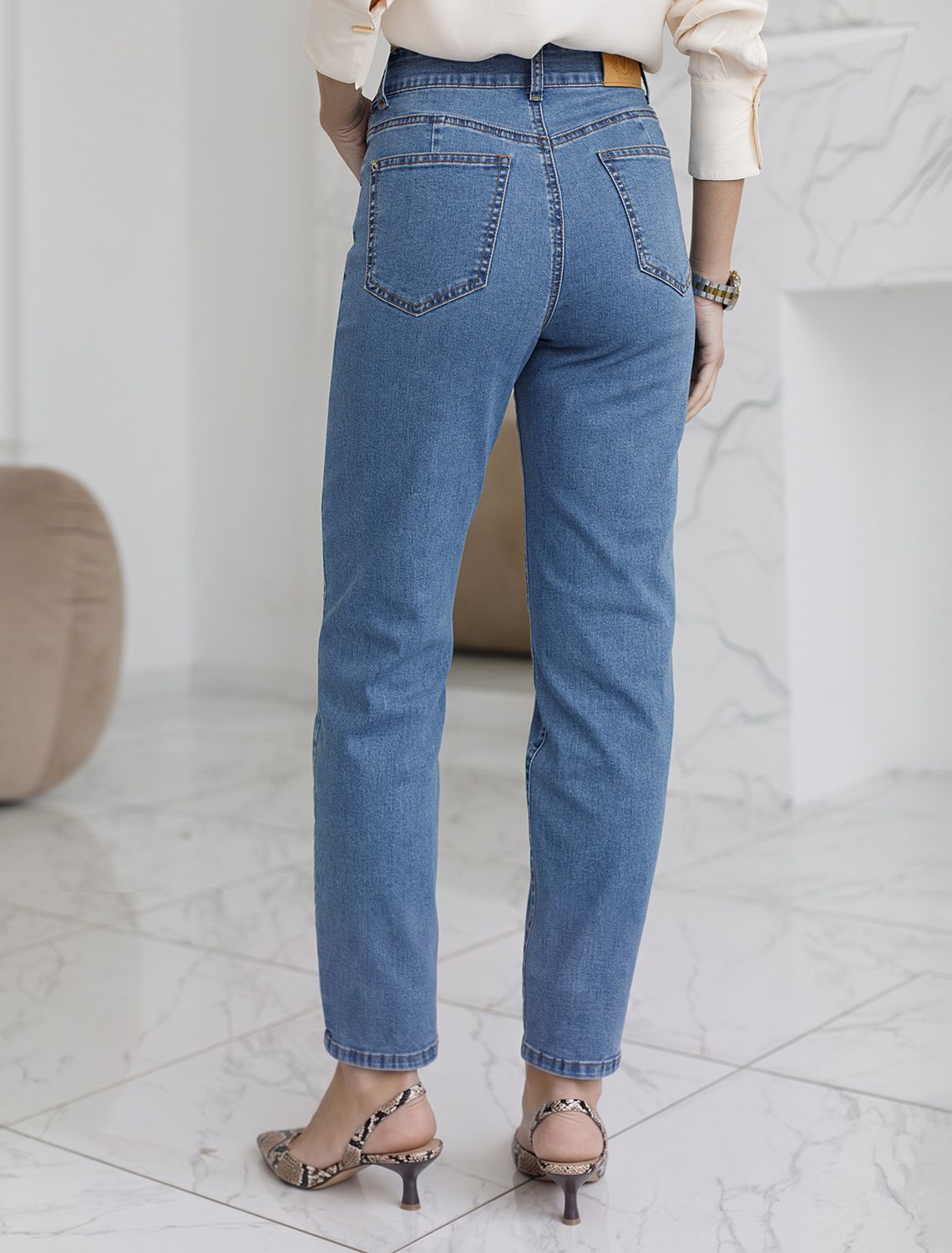 Джинсы мом фит из эластичного плотного денима D54.312 голубой