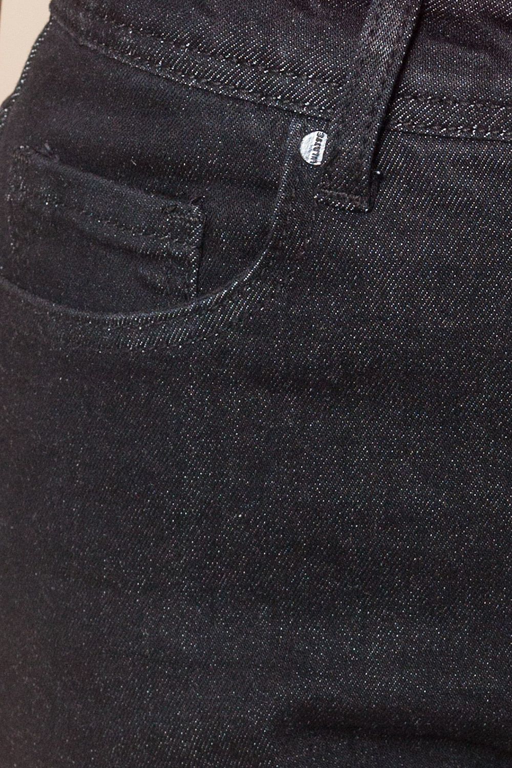 Главный must have осенне-зимнего сезона - черные джинсы mom-fit c завышенной талией. Выполнены из плотного эластичного денима. Эффекный элемент - застежка на черные болты - выделит из толпы и украсит любой лук ненавязчивым блеском. черный