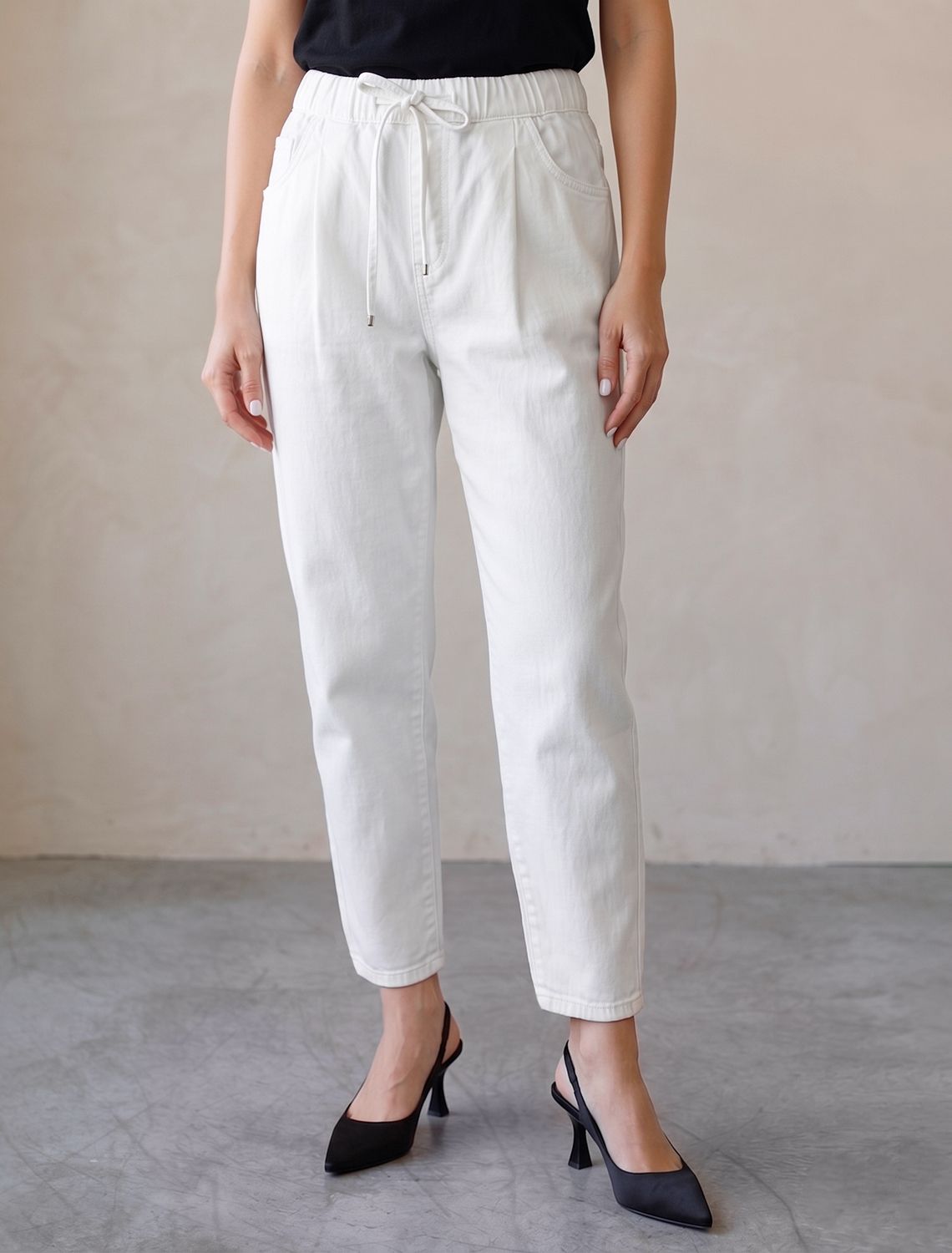Джинсы Mom (Мом) с поясом на резинке из облегченного денима D54.316 белый