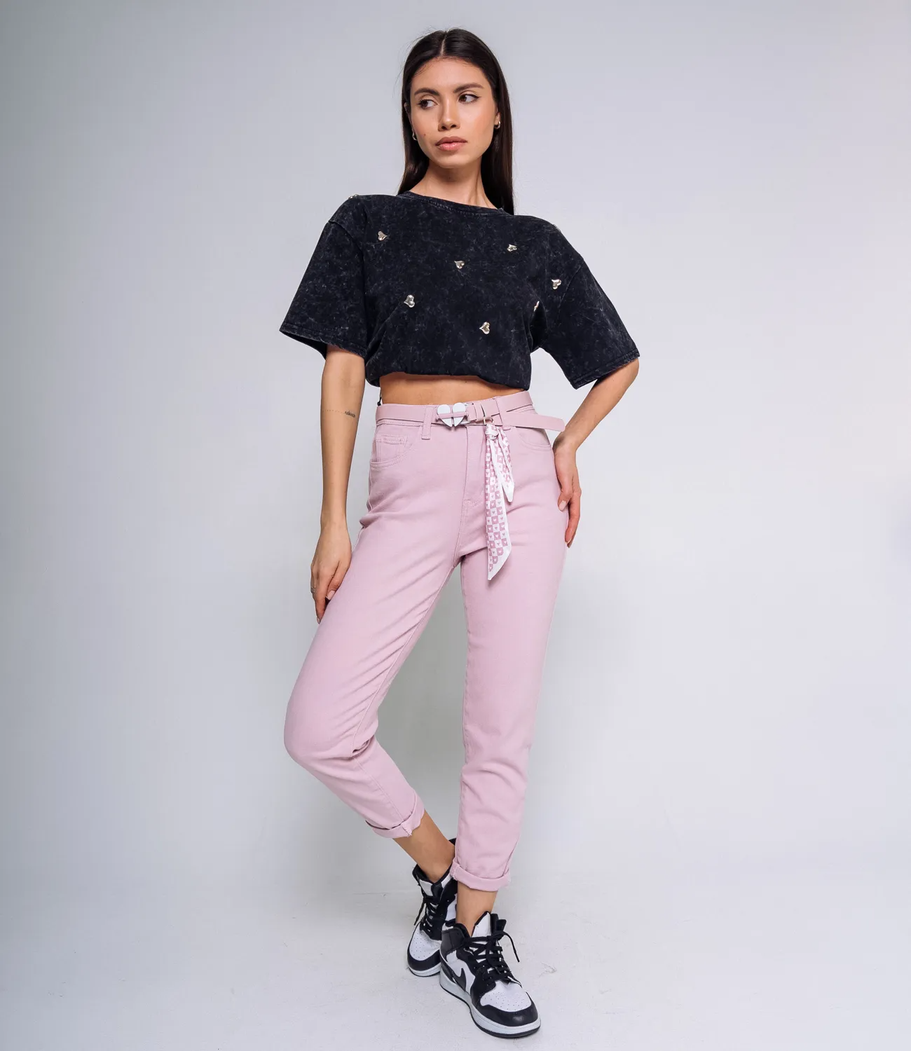 Джинсы #МСК5723, пудровый