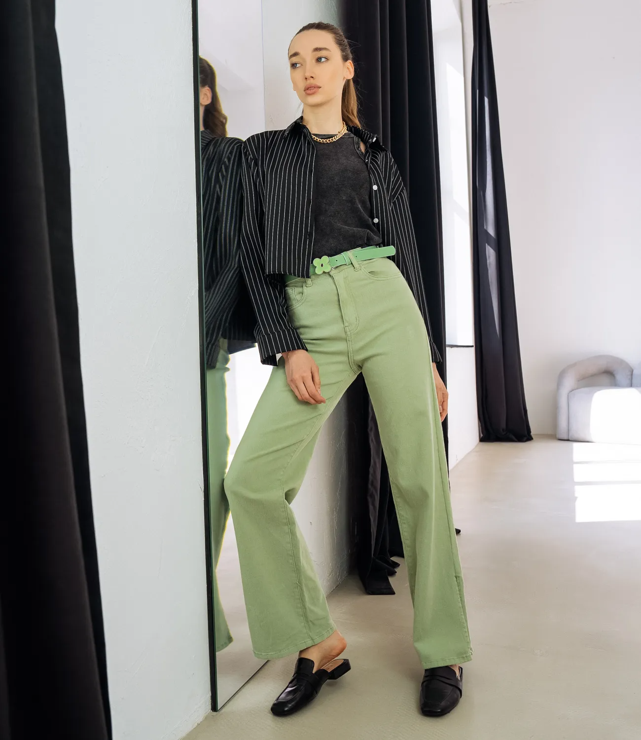 Джинсы #МСК5786 (1), фисташковый