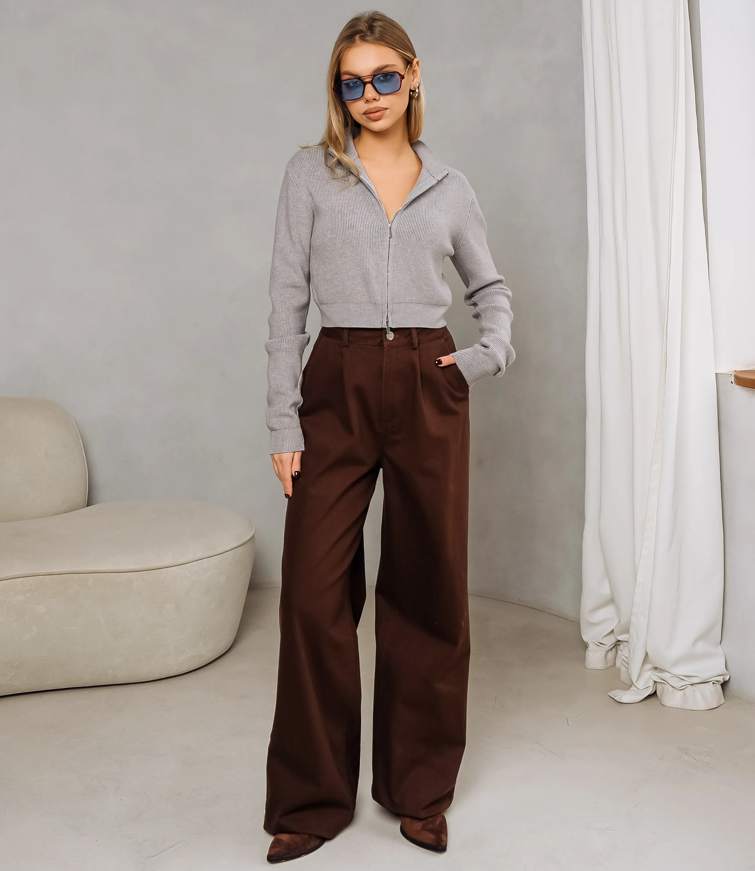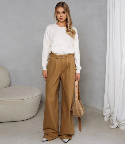 Джинсы — это часть гардероба, которая подчёркивает привлекательность каждой женщины. Джинсы выполнены в свободном прямом крое с очень широкими штанинами, опускающимися до пола и образующими лёгкие складки у низа. Пояс средней посадки с шлевками для ремня, застёгивается на металлическую пуговицу и скрытую молнию. Передняя часть декорирована двумя аккуратными защипами у пояса, придающими немного объёма в области бёдер и мягко выстраивающими силуэт. Классическая кишeня для рук врезного типа по бокам; задняя часть традиционно оформлена декоративными швами без наружных накладных карманов на видимой части. Центральный шаговый шов и боковые швы выполнены с прочной двойной прострочкой, подчёркивающей конструкцию изделия. Для пошива использована ткань 100% хлопок натуральный и дышащий материал, приятный к телу и обладающий хорошей износостойкостью. При соблюдении рекомендаций по уходу изделие сохраняет внешний вид и посадку даже после многократных стирок, что важно для розничной продажи и довольных покупательниц. Цвет и фактура максимально соответствуют фотографии на сайте, что упрощает презентацию товара в магазине и снижает количество возвратов. На странице представлена таблица размеров, которая поможет вам корректно сформировать ассортимент и минимизировать ошибки при оптовых закупках. Производитель обеспечивает качественную отделку и надёжную фурнитуру. Установленные оптовые условия адекватны и позволяют получить привлекательную маржинальность при продаже в магазинах. Рекомендуем включить эти джинсы в ассортимент оптовых закупок — они станут востребованным предложением для клиенток, ищущих комфортный и стильный повседневный предмет гардероба. Рост модели 168 см., 89-63-90.