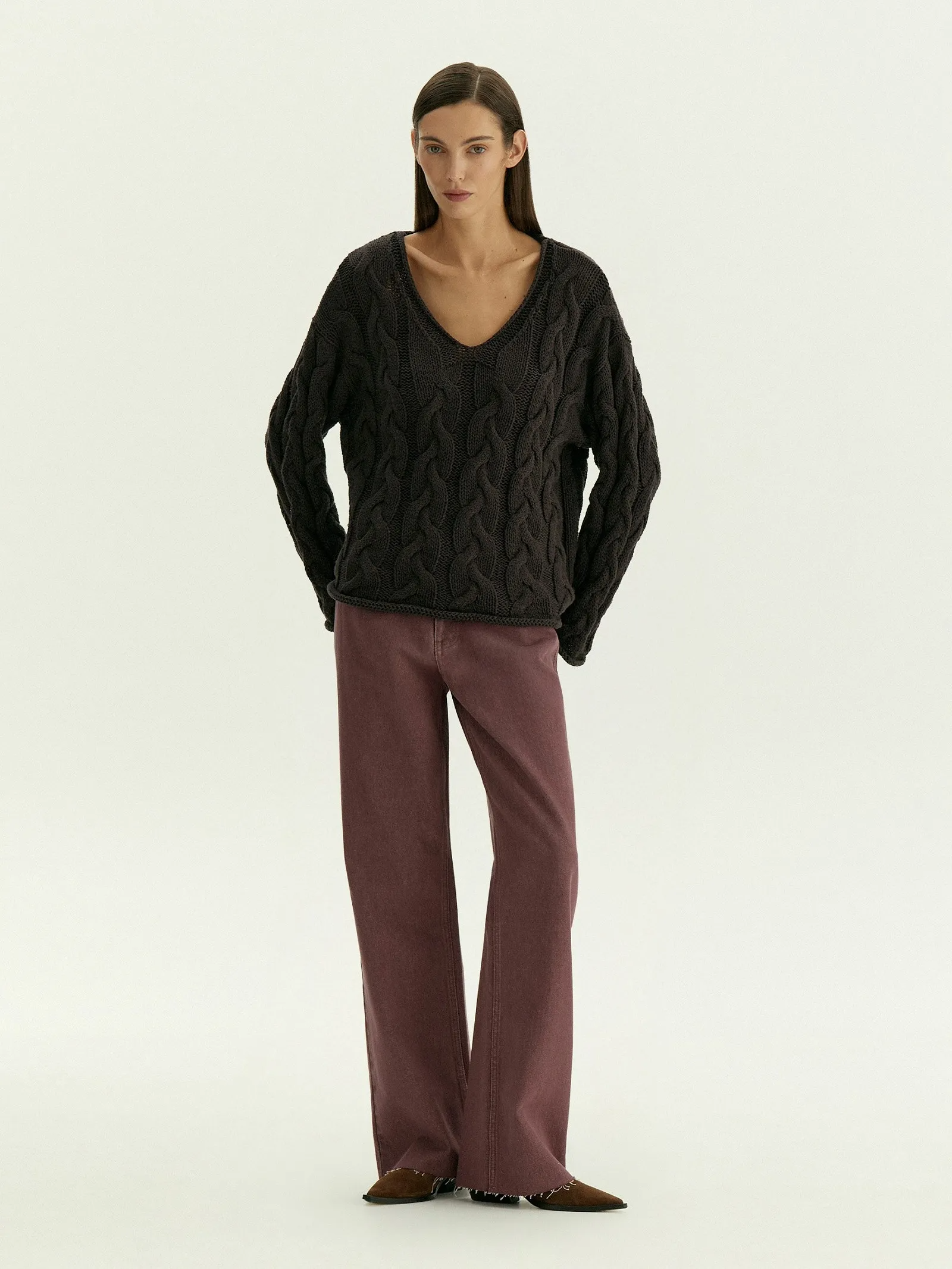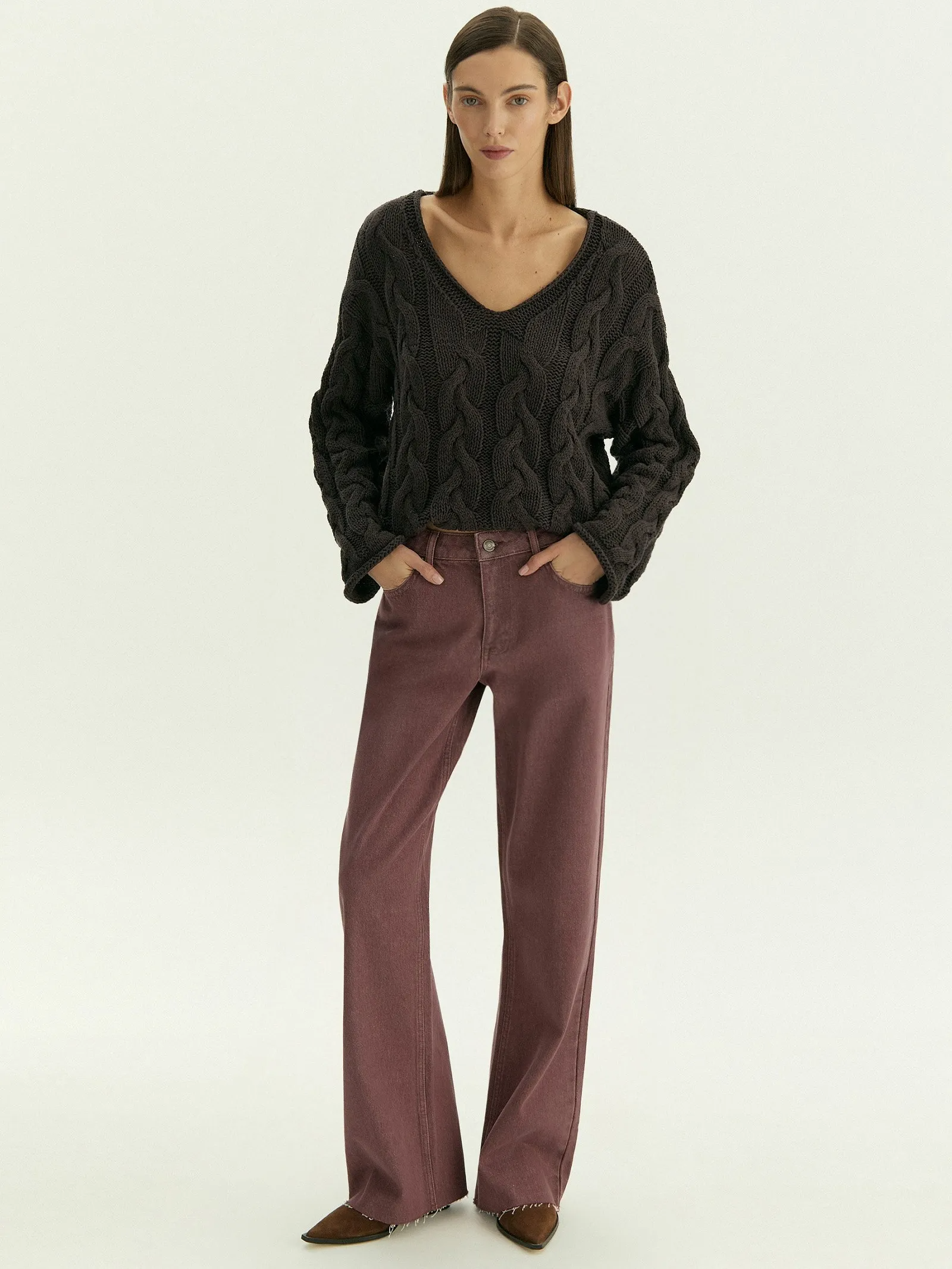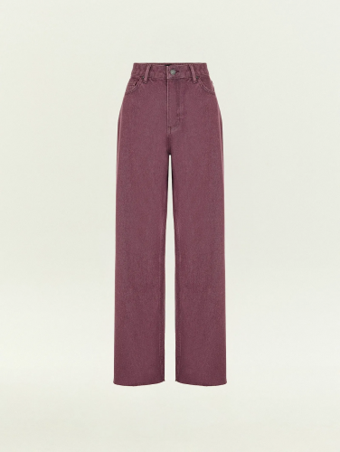 Джинсы в цвете марсала — самый простой способ сделать повседневные выходы модными и запоминающимися. Необработанный край дополнительно снижает градус официальности в образе. Модель с высокой посадкой имеет прямой крой. За счёт кроя даёт очень стройный, ровный вид и визуально вытягивает. Изделие застёгивается на пуговицу и молнию. Предусмотрены шлёвки для ремня. Джинсы сделаны из прочного хлопка. Маломерят на 1 размер.