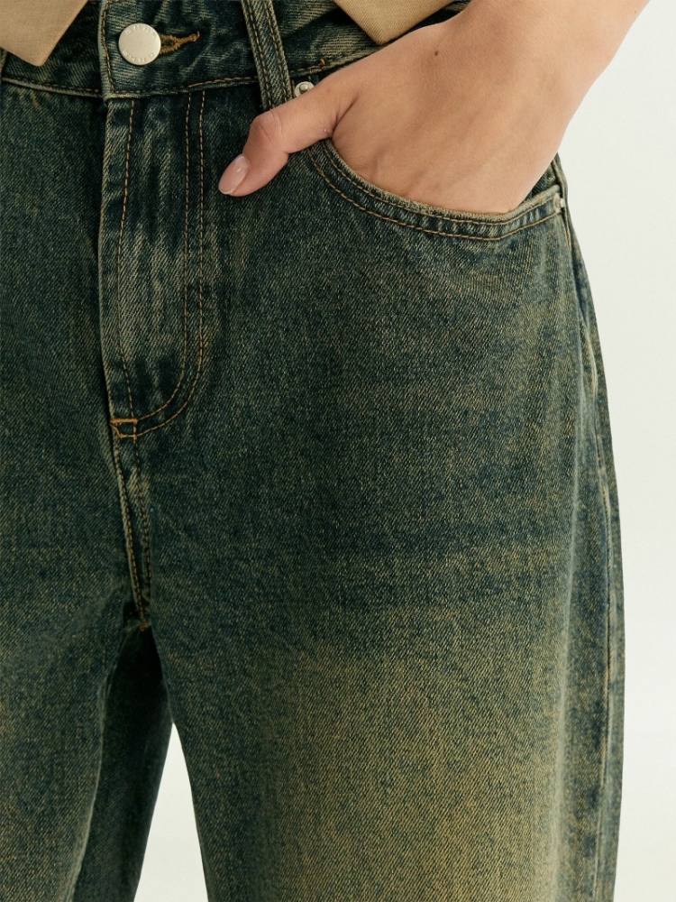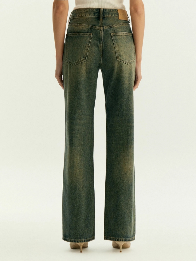 Прямые джинсы полной длины с эффектом коррозии — актуальный выбор в трендах сезона. Модель визуально корректирует силуэт, ноги выглядят ещё ровнее и длиннее. Имеет среднюю посадку. Джинсы синего цвета легко комбинируются с трикотажем любых оттенков и фасонов