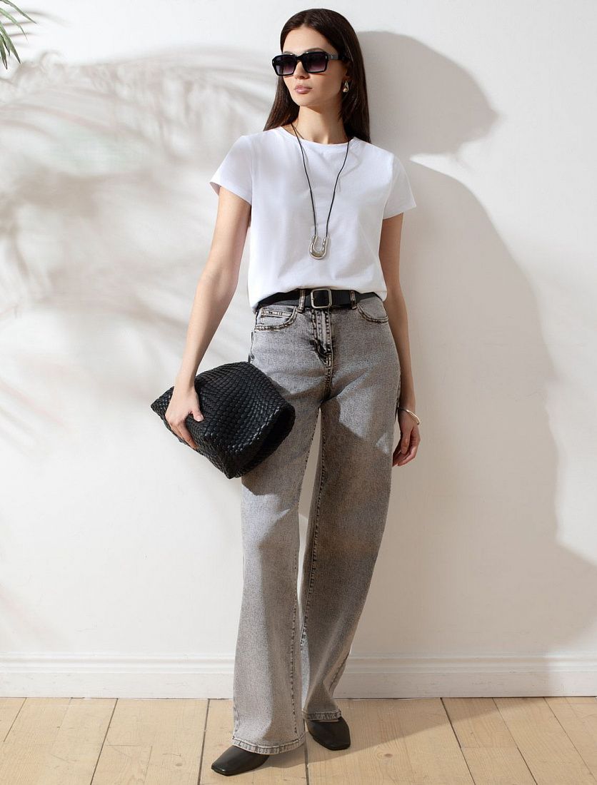 Стильные джинсы трубы серого цвета цвета прямого кроя выполнены из эластичного облегченного денима, что делает их особенно удобными для повседневной носки. Легкая декоративная стирка добавляет интересный акцент и подчеркивает современный дизайн. Джинсы правильного кроя визуально вытягивают силуэт, благодаря эластану в составе аккуратно садятся на любую фигуру, подчеркивая достоинства и обеспечивают максимальный комфорт в течение дня, не сковывая движения. Широкая размерная линейка подходит для разных типов фигур: свободные джинсы комфортны как для обладательниц пышных форм, так и для худеньких. Вы сможете подабрать джинсы на низкий или высокий рост. Джинсы идеально держат форму даже при активном движении и не вытягиваются после долгой носки. Качественная надежная фурнитура делает эти джинсы премиальными. Широкий подгиб добавляет актуальности — такой тренд отлично сочетается как с обувью на каблуке, так и на плоском ходу. Благодаря универсальному дизайну джинсы легко комбинируется с разными элементами гардероба.