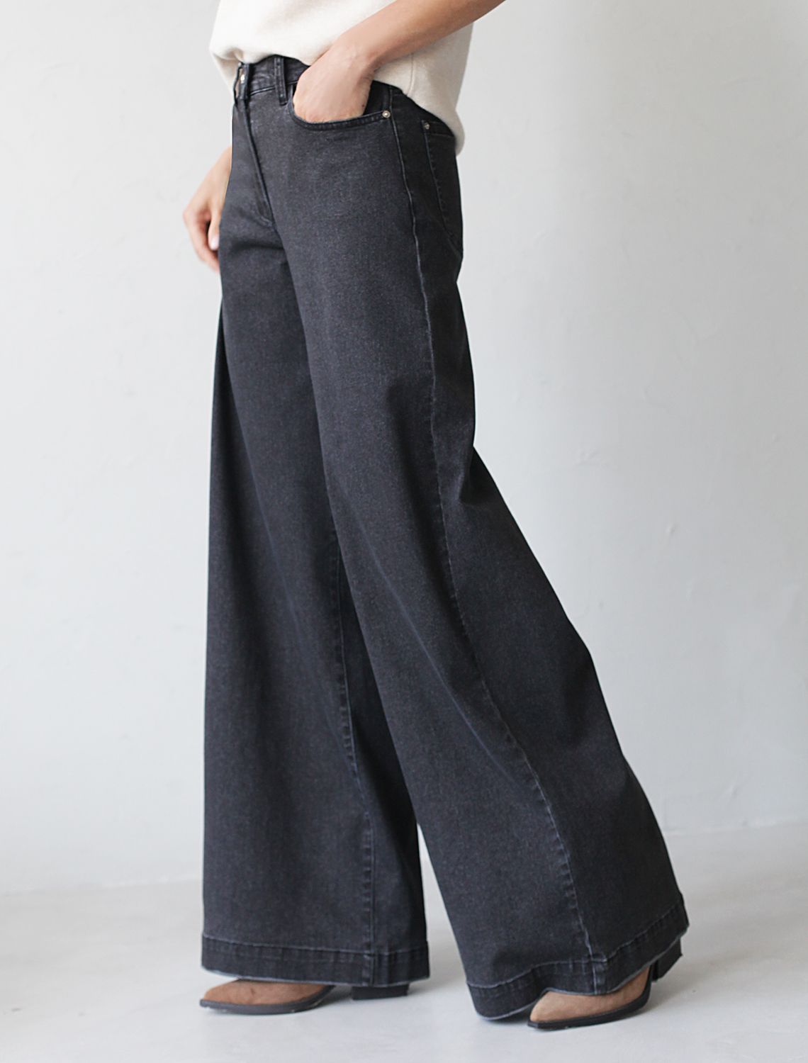Джинсы трубы широкие из эластичного денима