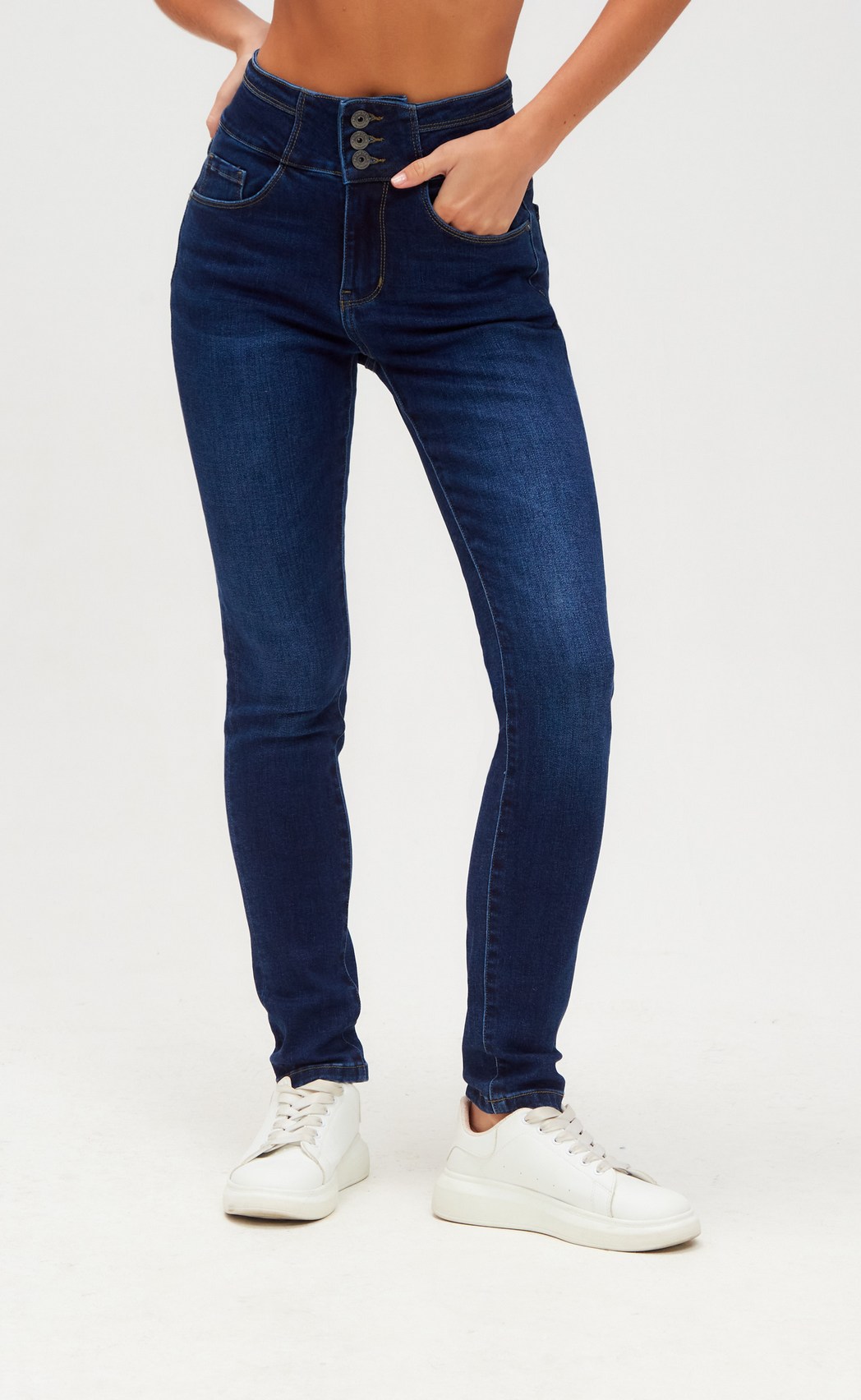 Джинсы женские от бренда Primm зауженного силуэта из высококачественного хлопка с небольшим содержанием эластана для комфорта. Синие джинсы женские с высокой посадкой из денима (82% хлопок, 14% вискоза, 4% эластан), застежка на молнию и 3 металлические пуговицы на поясе, карманы накладные и с отрезным бочком, посадка высокая. В составе ткани – эластан, что позволяет джинсам красиво подчеркнуть фигуру, а пояс на трех пуговицах идеально сидит на талии. Размерный ряд от 42 до 50 российского размера, длина внутреннего шва для всех размеров – 78 см. Джинсы женские можно купить оптом от производителя. В карточке товара Вы найдете размерные характеристики, которые помогут Вам определиться с размером. Бренд Primm уделяет внимание каждой детали, чтобы каждая покупательница могла насладиться непревзойденным качеством. Женская одежда от популярного российского бренда Primm – лучший выбор по цене и качеству!