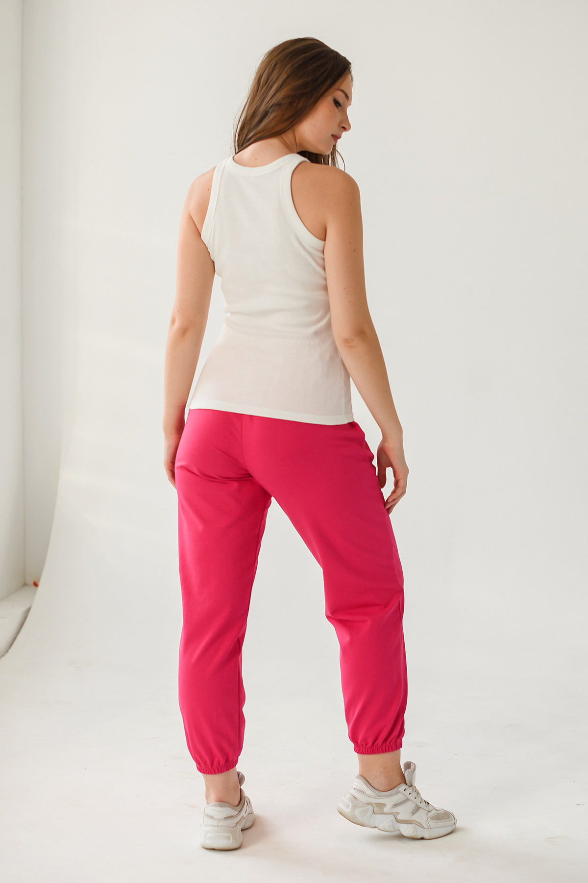 Майка женская спортивного стиля, прилегающего силуэта, из трикотажного х/б полотна с выработкой «рубчик».