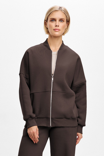 Удлиненный свитшот с объемным воротом и длинным рукавом на манжете. Декорирован именным шевроном с логотипом Ezanna.