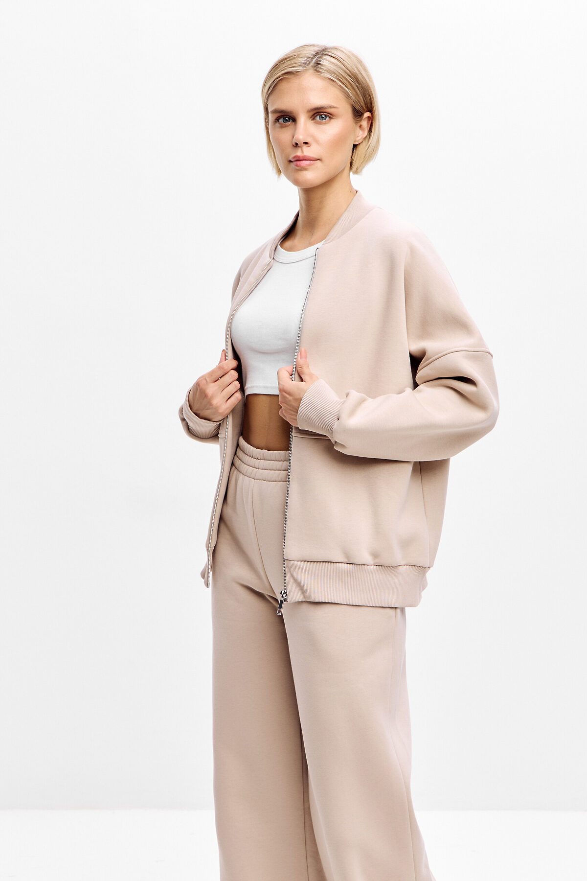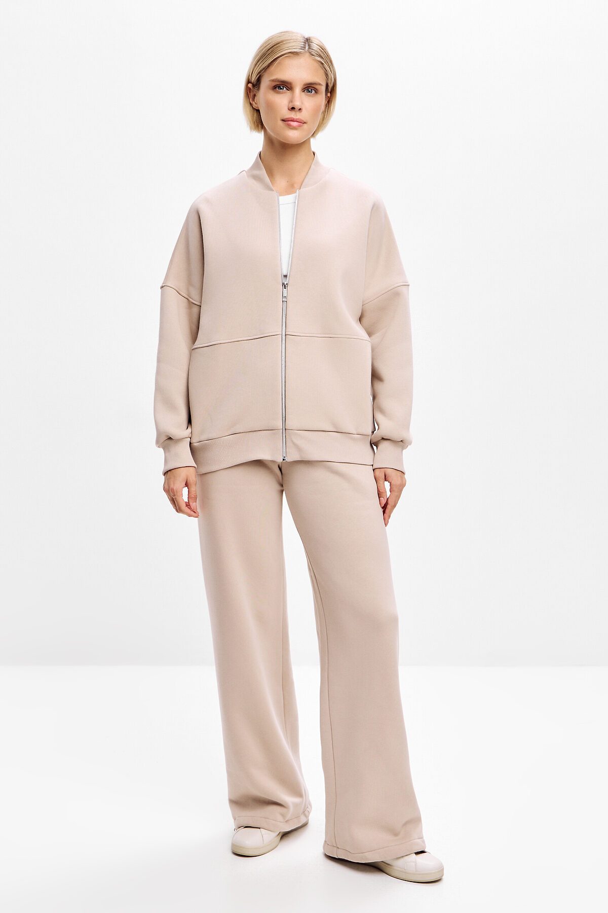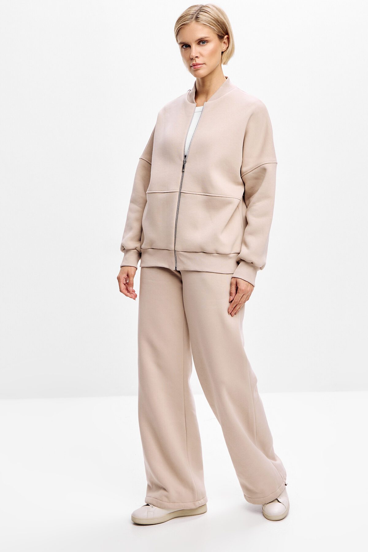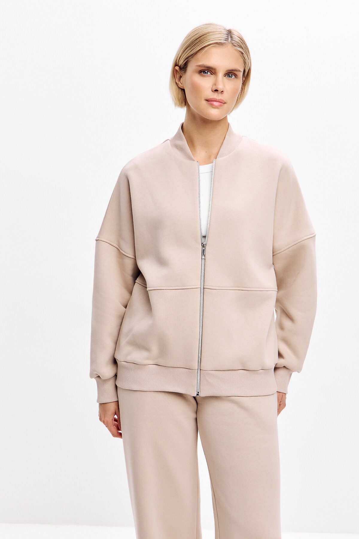 Толстовка оверсайз с геометричными 3d отстрочками, застегивается на металлическую молнию. Манжет, ворот и низ изделия выполнен из качественного эластичного материала в рубчик.