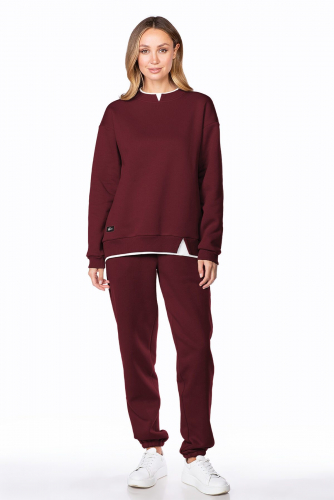 Свитшот свободного кроя, удлиненный по спинке, с длинным рукавом и боковыми разрезами. Отделка манжетов и горловины кашкорсе.