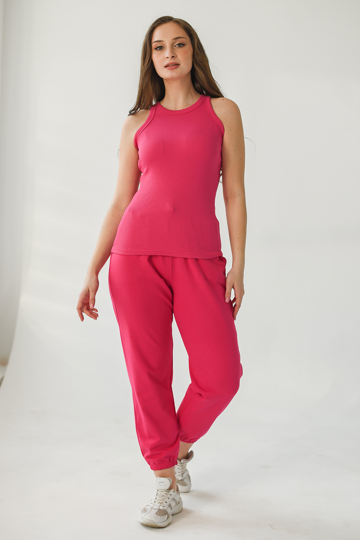 Майка женская спортивного стиля, прилегающего силуэта, из трикотажного х/б полотна с выработкой «рубчик».