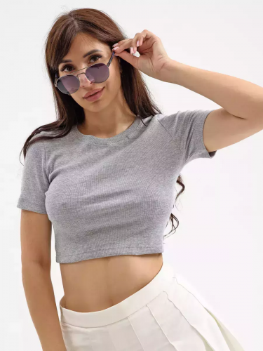 Майка женская спортивного стиля, прилегающего силуэта, из трикотажного х/б полотна с выработкой «рубчик».