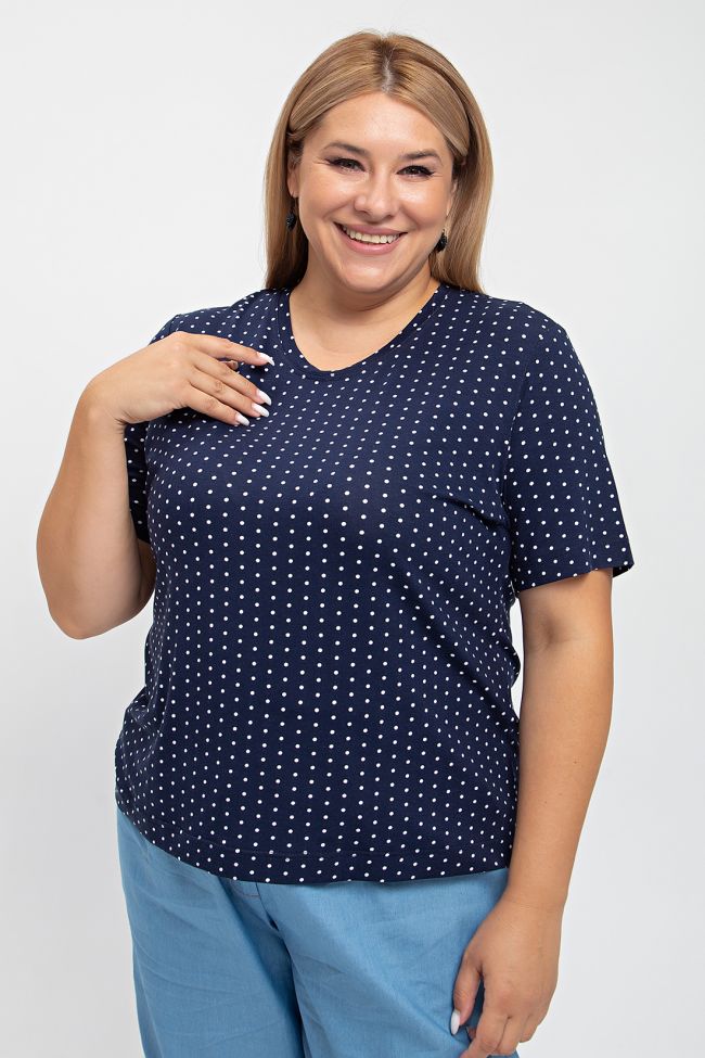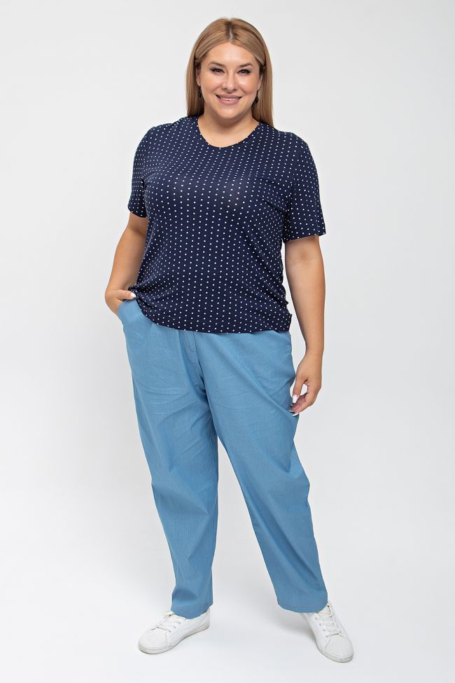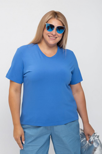 сине-белый Комфортная футболка приталенного силуэта из вискозного трикотажа.  Круглый вырез горловины обработан бейкой. Короткие втачные рукава. Низ изделия прямой. Модель  отлично сочетается с джинсами, брюками или юбками. Комфортный вариант для жаркого лета!