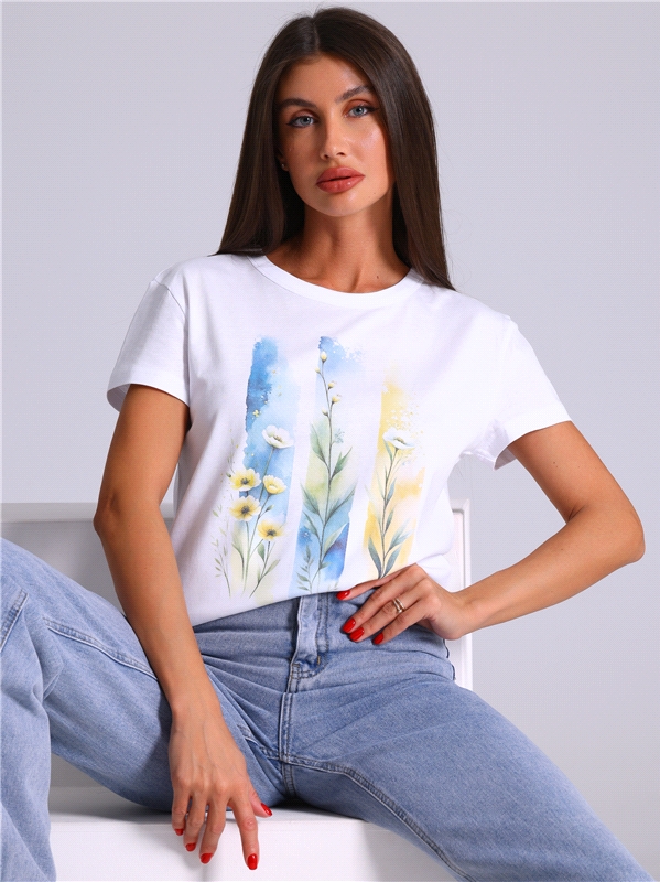 кулир / хлопок 100% белый / - / Весенняя акварель
