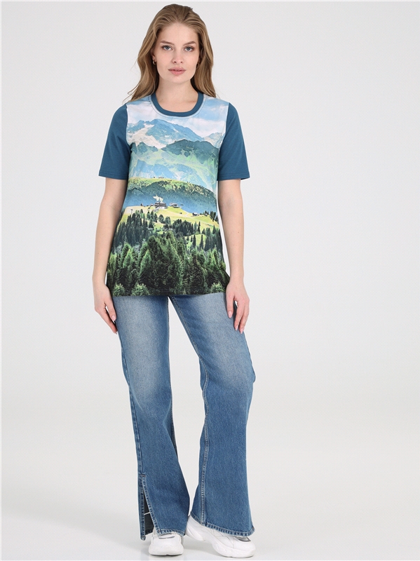 кулир с лайкрой / хлопок 68% + ПЭ 24% + лайкра 8% - / летний лес+темная бирюза155 / -