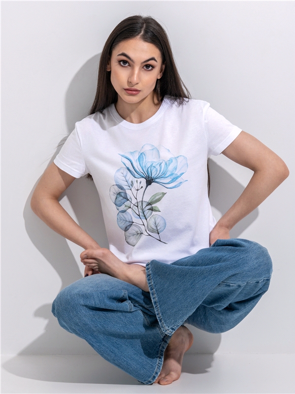 кулир / хлопок 100% белый / - / Цветок с листьями