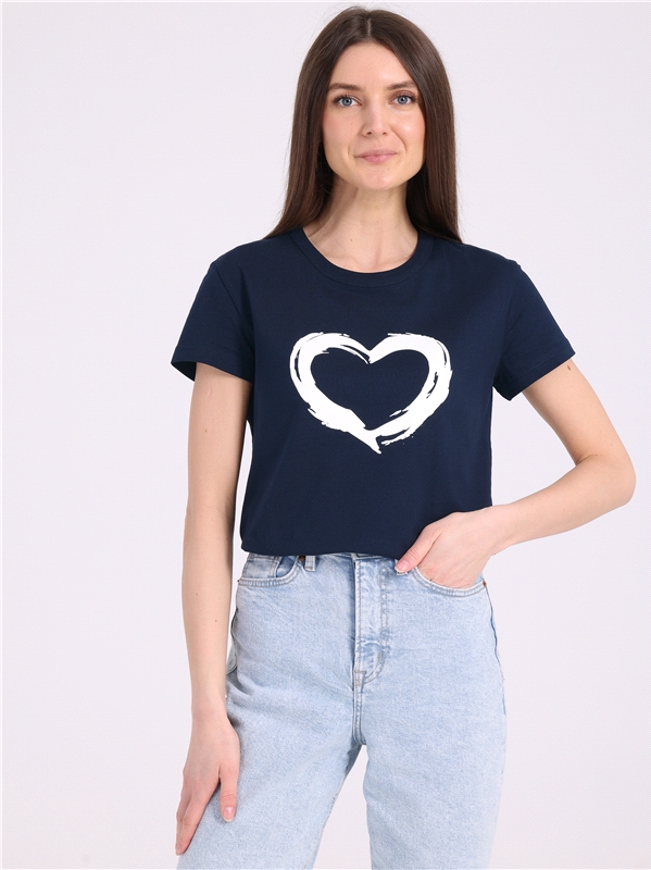 кулир / хлопок 100% темно-синий77 / - / Сердце кистью