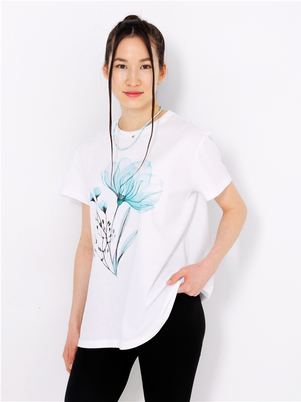 кулир / хлопок 100% белый / - / Бирюзовый цветок