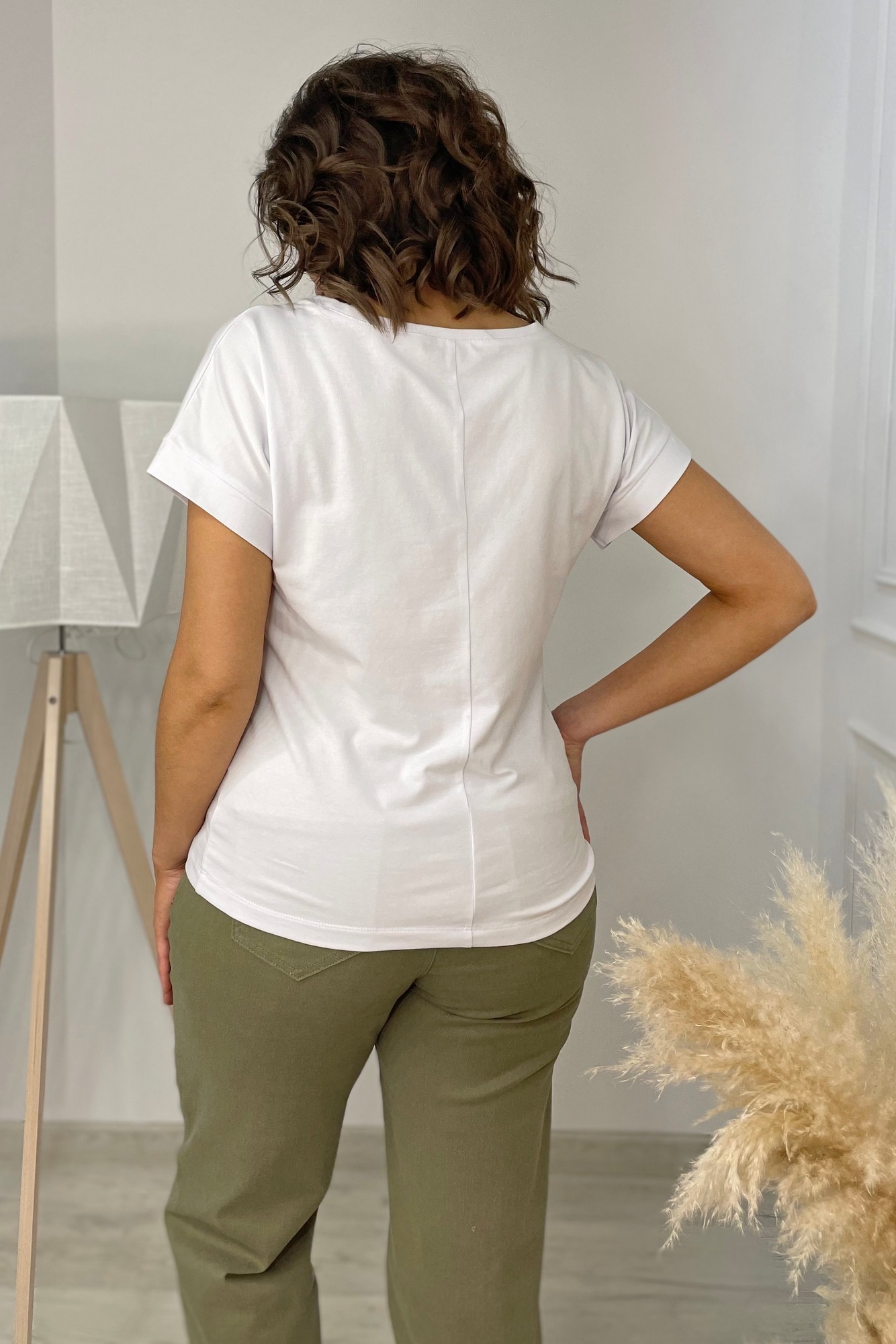 По переду расположен принт. Спинка со средним швом.