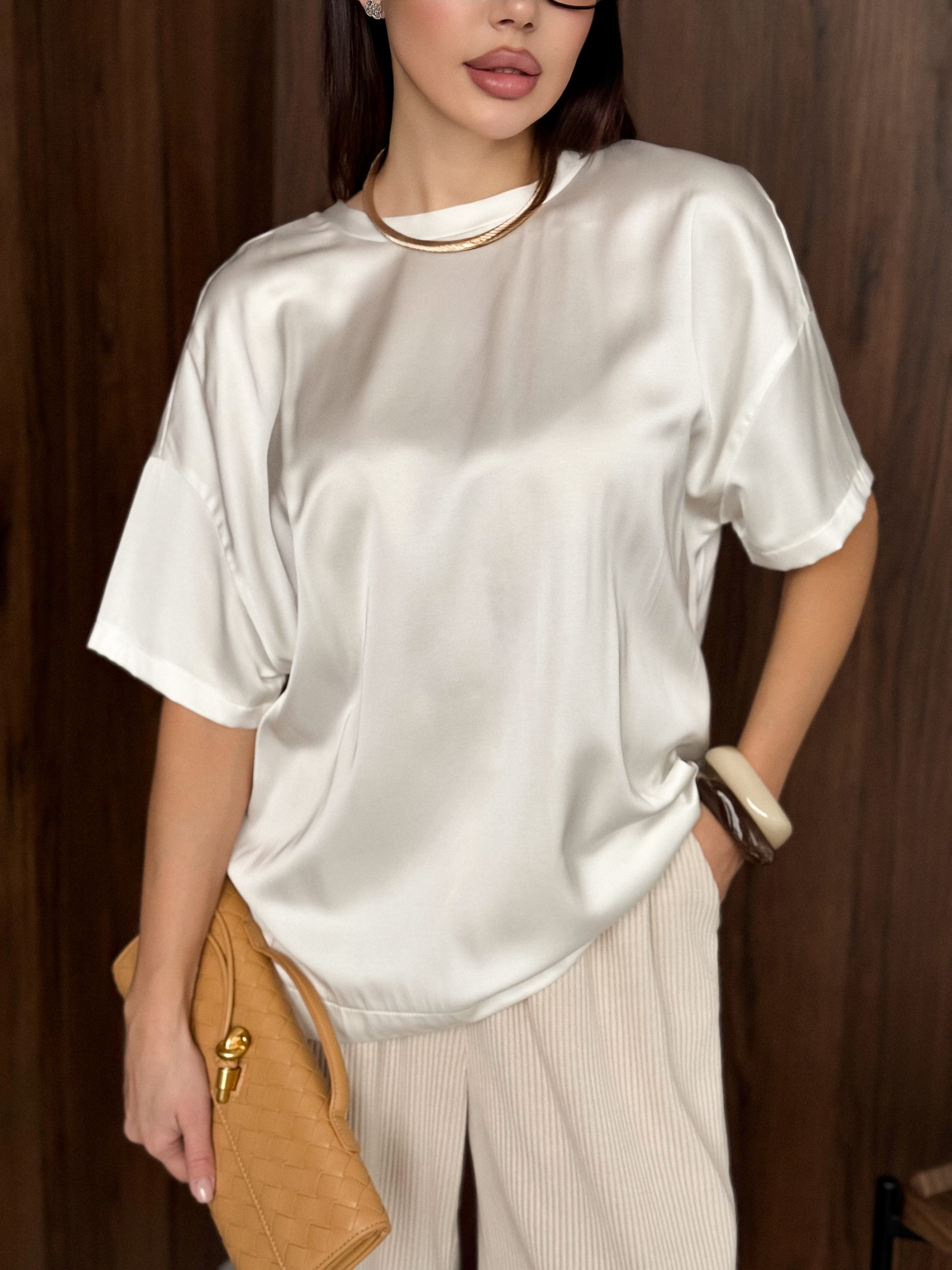 Футболка из вискозного сатина с застежкой на пуговицу на спинке.