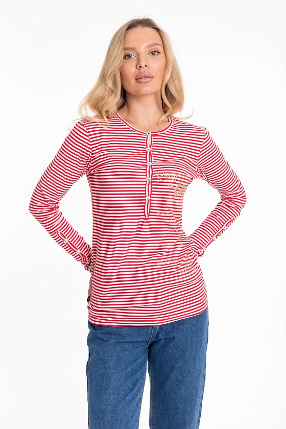 Толстовка с принтом и длинными рукавами. Рукава и горловина спереди с короткой застёжкой. Отделка бейкой.