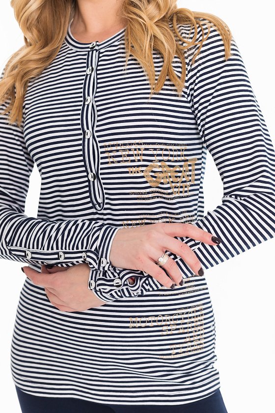 Толстовка с принтом и длинными рукавами. Рукава и горловина спереди с короткой застёжкой. Отделка бейкой.