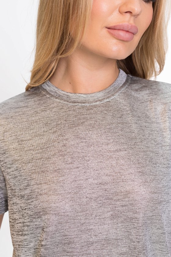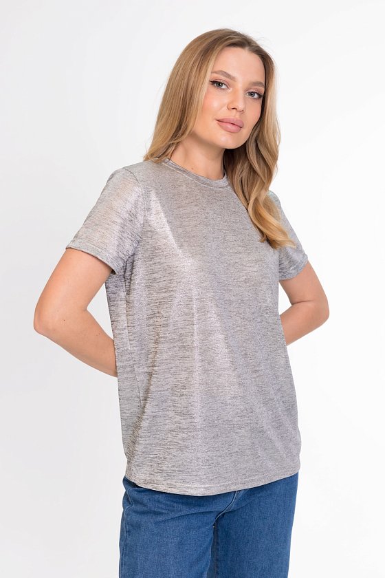 Короткий втачной рукав, круглый вырез горловины, свободный крой. Универсальна с любым низом.