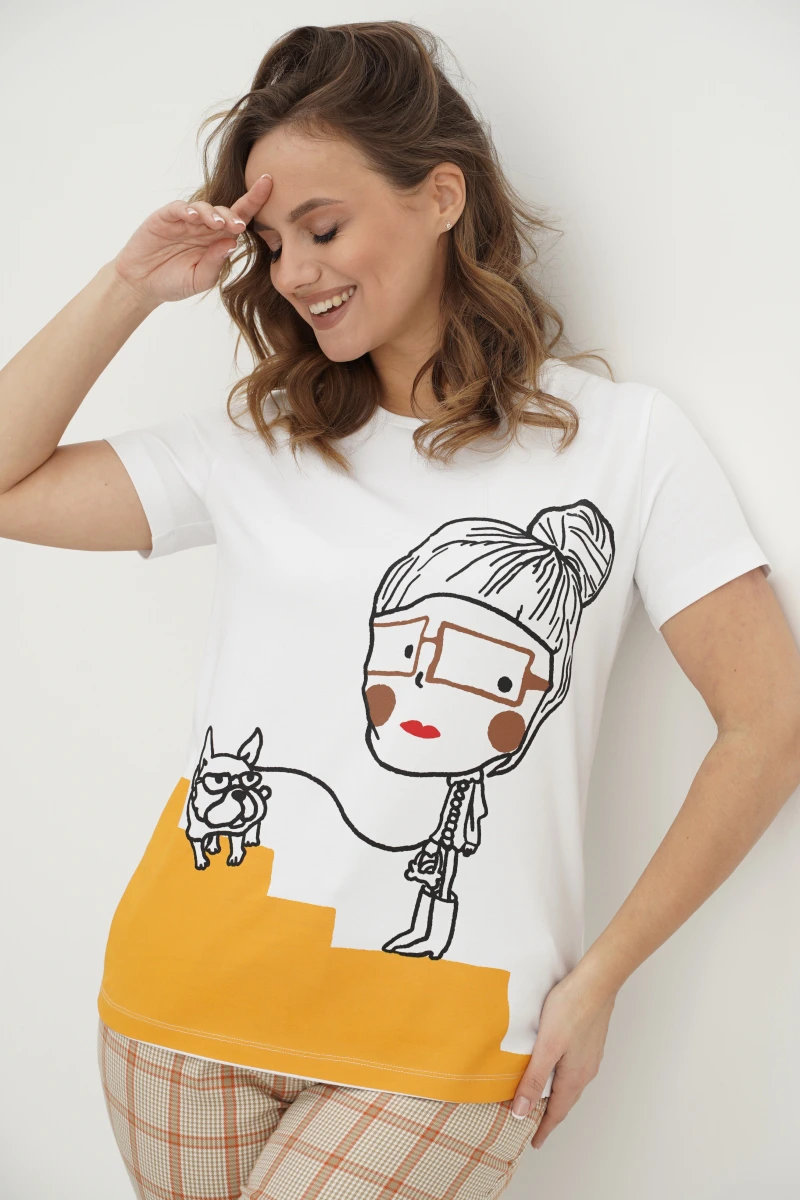 Базовые футболки - это конечно хорошо, но что делать, если хочется привнести в образ яркости, иронии и немного артистизма? Лучший способ выразить себя - выбрать вариант с классным говорящим принтом. Футболка классического кроя с втачным рукавом. Длина футболки около 60 см. Длина рукава около 15 см.