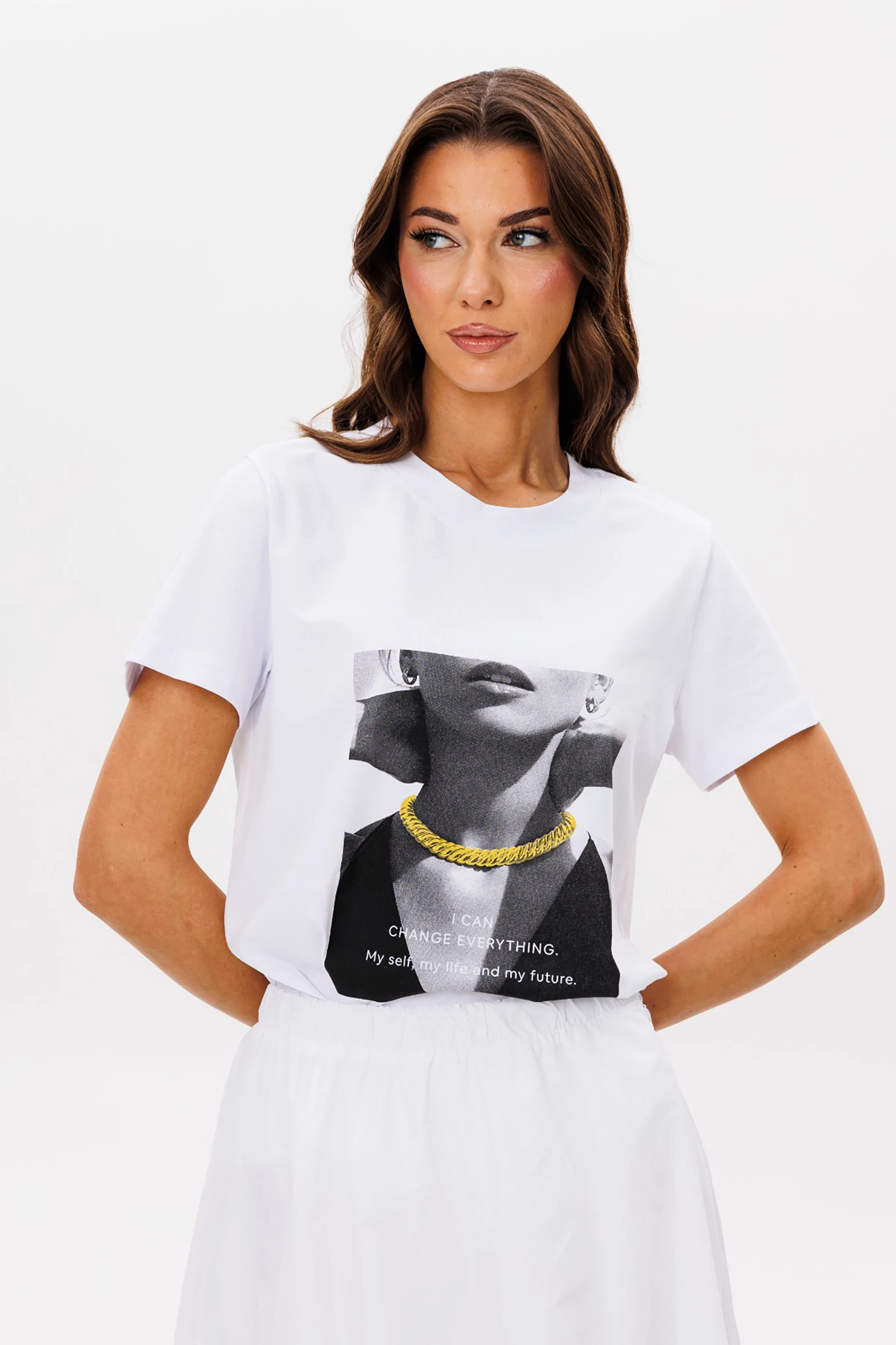 Базовые футболки - это конечно хорошо, но что делать, если хочется привнести в образ яркости, иронии и немного артистизма? Лучший способ выразить себя - выбрать вариант с классным говорящим принтом. Футболка классического кроя с втачным рукавом. Длина футболки около 60 см. Длина рукава около 15 см.