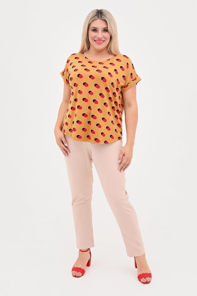 коричневый Удобная футболка приталенного силуэта из вискозного трикотажа.  Круглый вырез горловины обработан внутренней бейкой. Короткие цельнокроеные рукава, по низу оформлены отворотами. Низ изделия с актуальным закруглением. Модель отлично сочетается с джинсами, брюками или юбками. Комфортный вариант для жаркого лета!