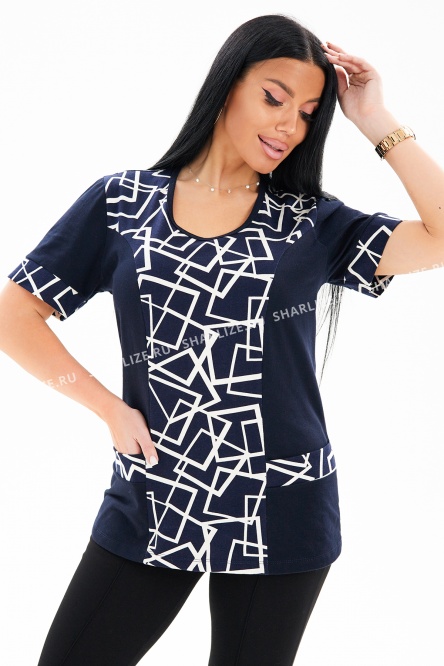 Комфортная женская футболка с яркими абстрактными вставками по центру полочки, на рукавах и карманах.