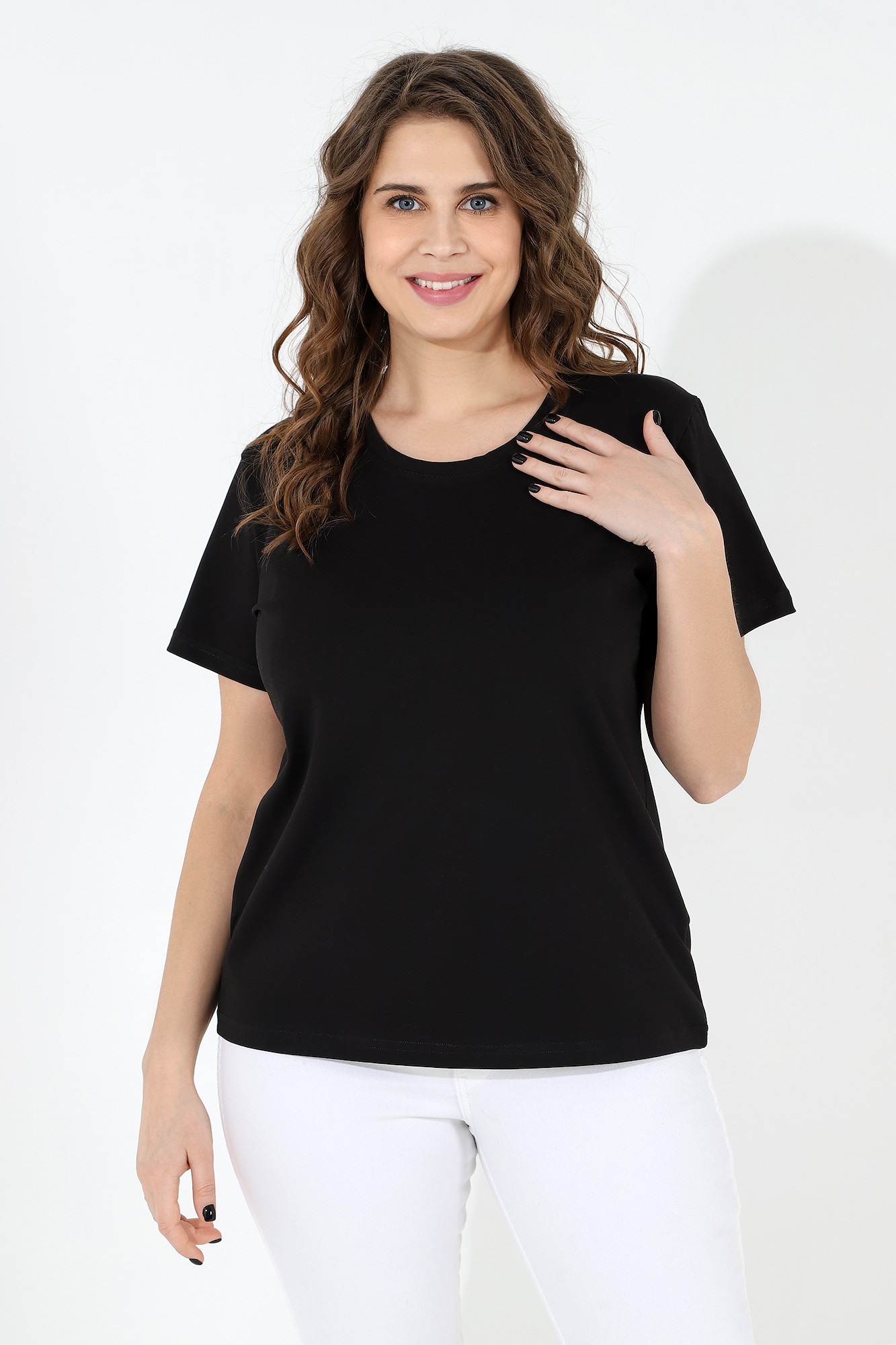 Футболка женская из трикотажного гладкокрашеного полотна «кулирка» с лайкрой, классического покроя, с короткими втачными рукавами и горловиной овальной формы, обработанной втачной планкой.