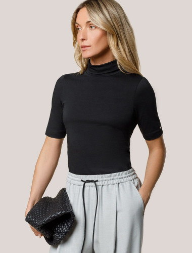 Базовая однотонная футболка из премиального хлопка. Горловина выполнена из рибаны в тон изделия, Рукава с подворотами и золотистым логотипом бренда. Добавление эластана в состав изделия способствует формоустойчивости. Самое высокое качество хлопковых волокон обеспечивает комфорт в любое время года. Идеально держит форму и сохраняет внешний вид в течение долговременного использования. Универсальная базовая вещь для ваших стилистических решений.