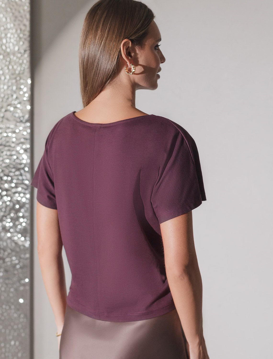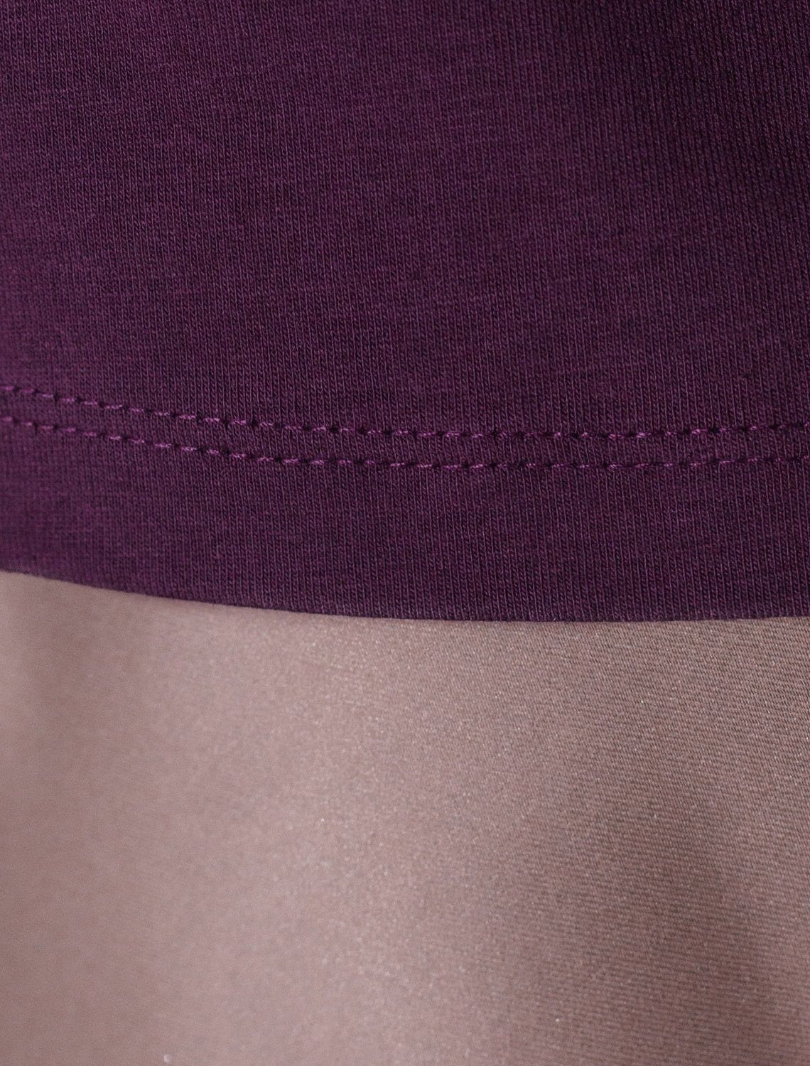 Футболка цвета бургунди идеально подходит для вечеринки и создания яркого образа. Оригинальный принт из блестящей фольги в виде цветка придает изделию шикарный вид, который привлечет внимание на любом мероприятии. Модель с вырезом лодочка и цельнокроеным рукавом обеспечивает свободу движений и комфорт в носке. Такой фасон изделия подходит на большие размеры, гармонично сидит на фигуре и помогает создать легкий акцент на достоинствах. Благодаря особенностям кроя с цельнокроеным рукавом удается искусно скроет любые возможные недостатки в области плеч и рук, обеспечивая комфортное прилегание без ощущения скованности. Аккуратный вырез лодочка красиво подчеркивает шею и делает образ элегантным, сохраняя актуальность для разных случаев — от рабочих встреч до вечерних прогулок и праздничных мероприятий.