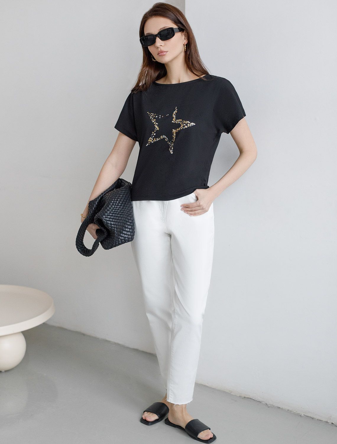 Нарядная футболка с блестящим принтом D49.133 черный_star
